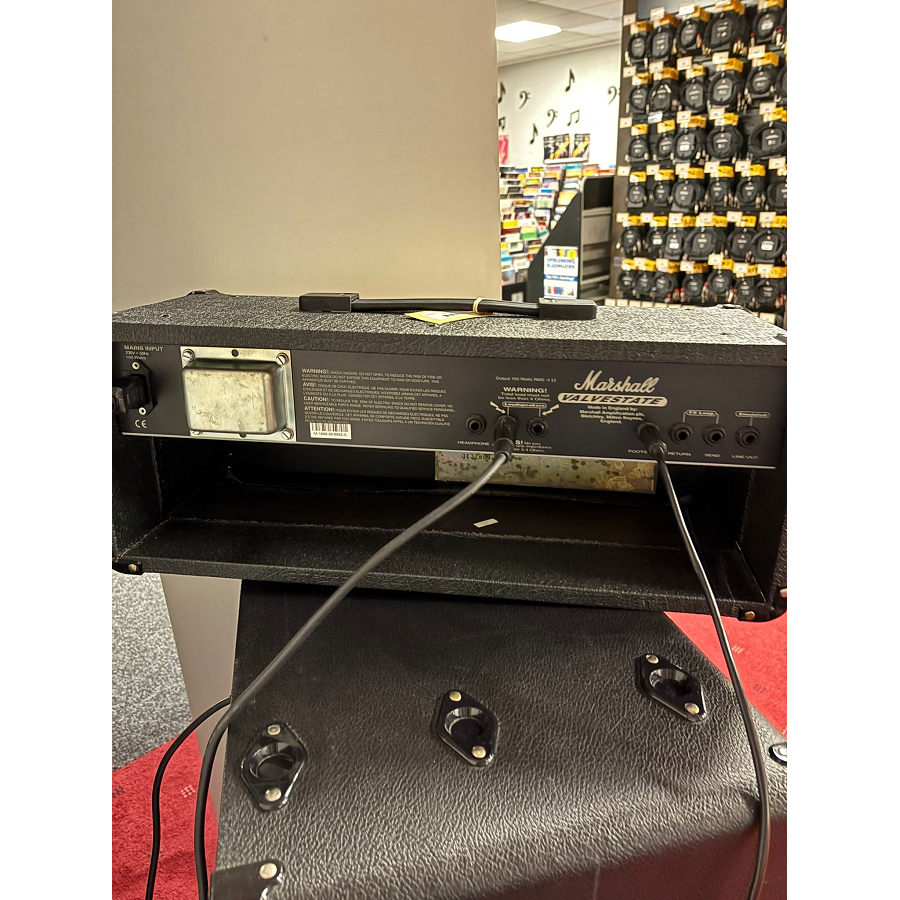 De Marshall VS100H is een 100-watt solid-state gitaarversterkerkop uit de Valvestate-serie. Het biedt een hybride ontwerp, met een voorversterkerbuis (12AX7) die zorgt voor een warme buizenklank in combinatie met een solid-state eindversterker. De versterker heeft drie kanalen (clean, overdrive 1 en overdrive 2), waardoor hij veelzijdig is voor verschillende muziekstijlen. Het is bekend om zijn krachtige geluid en betrouwbaarheid, ideaal voor podiumgebruik.