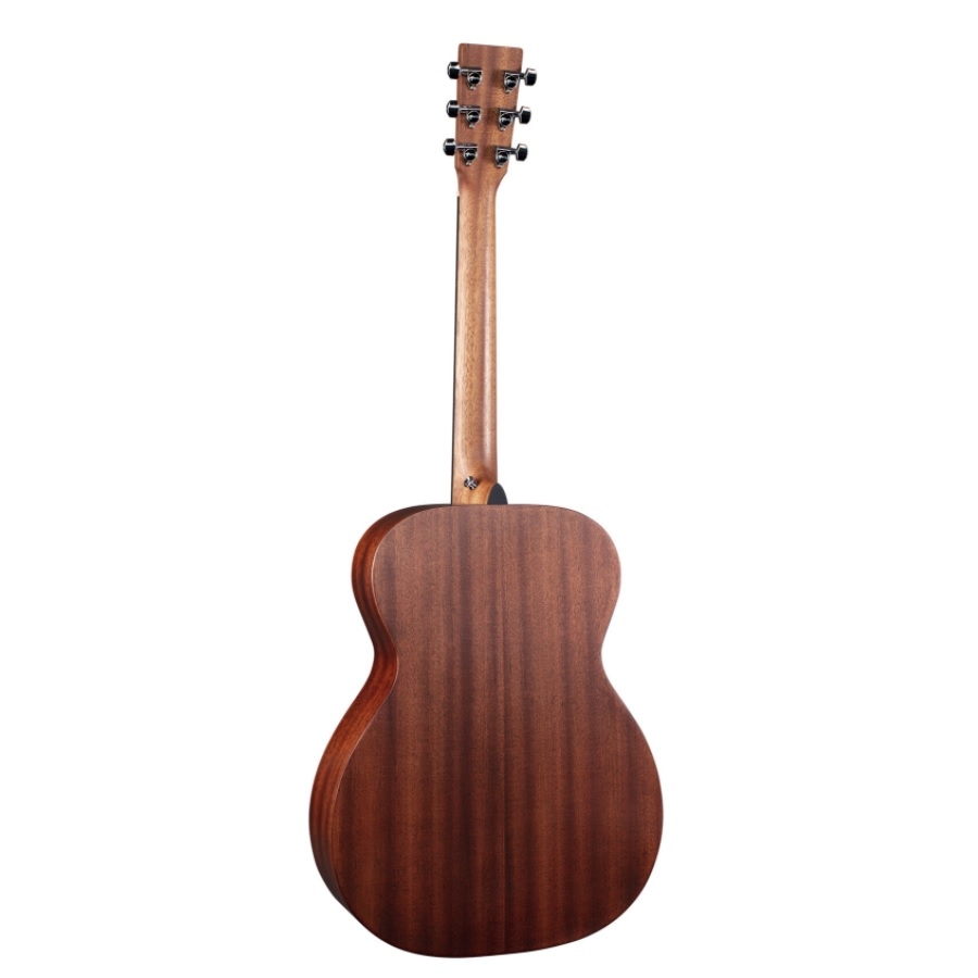 De 000-10E is een prachtige auditorium gitaar. De gehele body is van sapele gemaakt. Sapele heeft een geweldige resonantie en een goede sustain, en produceert een warm en scherp geluid. Dit is ideaal voor fingerpicking, maar ook slaggitaar klinkt mooi. Bovendien zorgt sapele voor een prachtige donkerbruine natuurlijke kleur. De hals is van ‘select hardwood’ gemaakt, dit betekend dat ze cederhout of mahoniehout hebben gebruikt, afhankelijk van welke ze geleverd konden krijgen zonder te hoeven participeren in ontbossing. Beide cederhout en mahoniehout werken uitstekend als gitaarhals, en het verschil is bijna onmerkbaar. De toets is van richlite gemaakt. Richlite bestaat uit een combinatie van houtsnippers en resin. Dit lijkt op een soort kunststof, echter voelt het niet zo aan. Een toets van richlite is bijna niet uit elkaar te houden van een toets van mahoniehout of palissander qua speelervaring. Alleen qua uiterlijk is het duidelijk. Richlite heeft een prachtige zwarte kleur, wat fantastisch staat bij de donkere sapele kleur. Bovendien hoeft een toets van richlite niet schoongemaakt of geolied te worden, waardoor deze qua onderhoud erg makkelijk is. Kortom, een prachtige gitaar met een groots geluid!