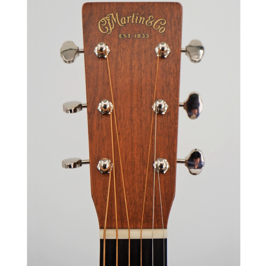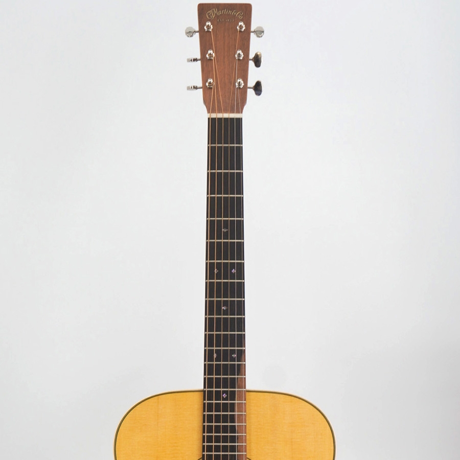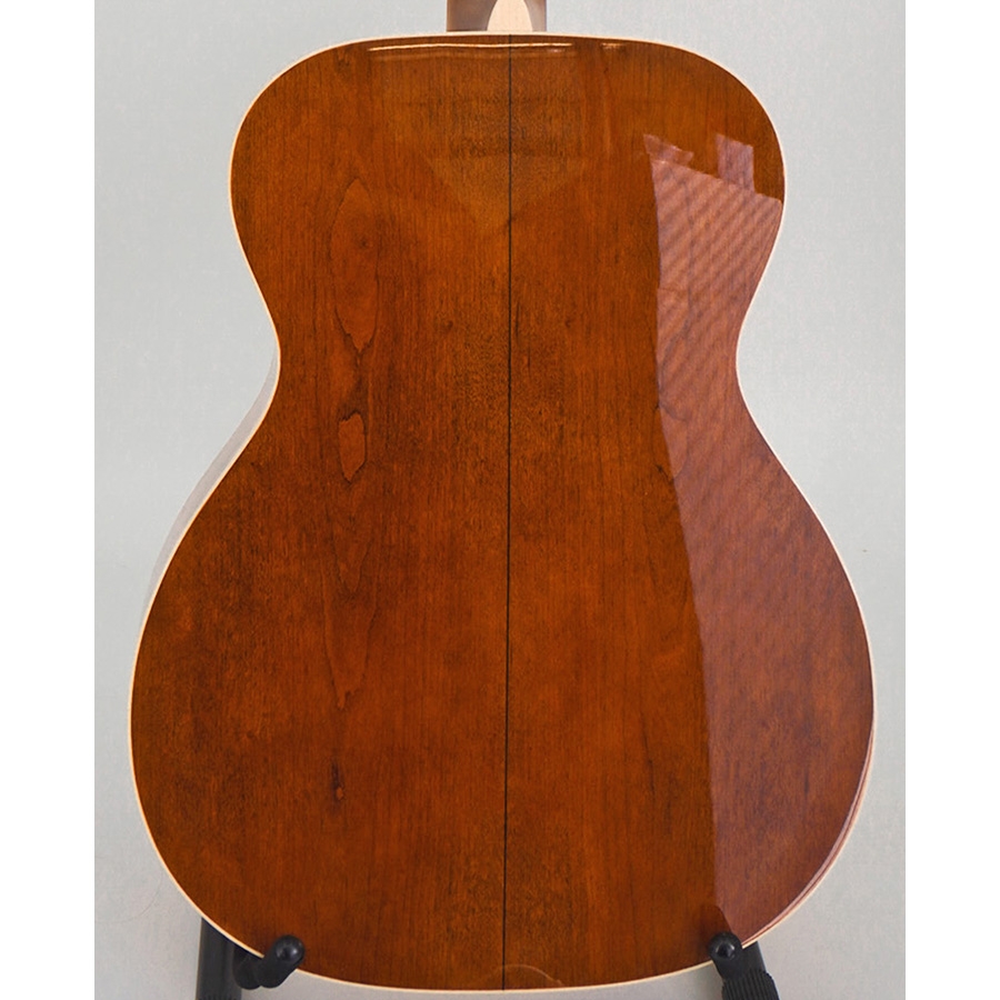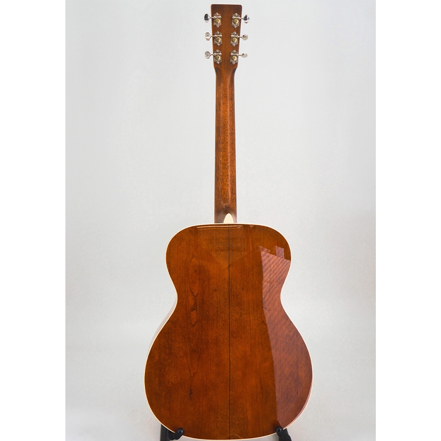 De Martin 000-14 Cherry Hill is een limited edition Custom Shop Gitaar die de standaard afmetingen heeft van een authentieke 000. Dit betekent dat hij een neutrale sound heeft, met diepe bassen en heldere mids en highs. De sitka sparren top in combinatie met kersenhouten zij – en achterkant creëert een relatief heldere toon die meer richting mahonie gaat dan palissander. Kersen is overigens een prachtige toonhout die we de laatste jaren steeds meer zien in high-end gitaren. Een ander pluspunt aan kersen is hoe het hout eruit ziet. Het golft prachtig op de achterkant van deze gitaar, en is bij iedere lichtbron weer anders van kleur en vorm. De hals van deze gitaar is gemaakt van mahonie en het fretboard van ebbenhout. Alle hardware is zoals we van Martin gewend zijn van de hoogste kwaliteit!