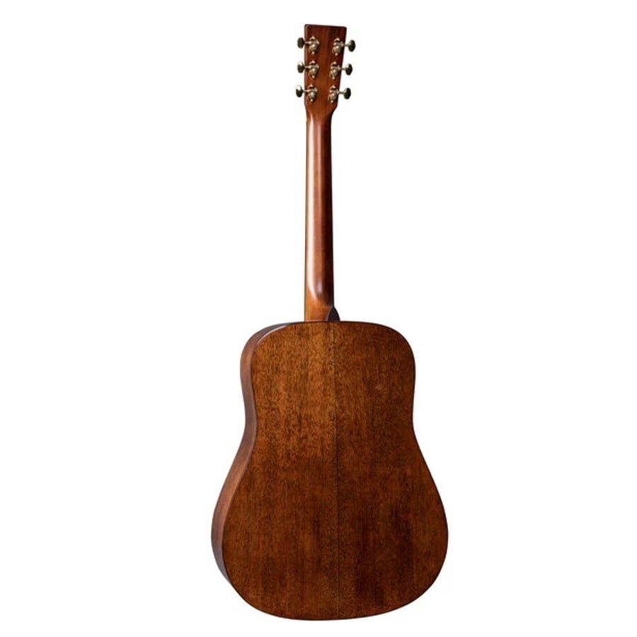 De D-18 is een Dreadnought gitaar. Dreadnoughts zijn zeer populair, ze zijn enorm veelzijdig en produceren een heel vol en rijk geluid. Het zijn de ideale slaggitaren, echter klinkt fingerstyle picking op een dreadnought ook geweldig. Bovendien moet u voor een dreadnought echt bij Martin zijn, gezien ze de dreadnought hebben uitgevonden en één van de beste zijn qua ontwikkeling. De D-18 heeft een bovenblad van sparrenhout. Sparrenhout heeft een geweldige resonantie en produceert een mooi warm geluid. De achter- en zijkanten zijn van mahoniehout gemaakt. Mahoniehout heeft een mooie donkere kleur en zorgt voor een warm en krachtig geluid. De gitaar heeft een mahoniehouten hals en een ebbenhouten toets, wat voor een fijn speeloppervlak zorgt. Kortom, een prachtige gitaar, esthetisch en muzikaal!