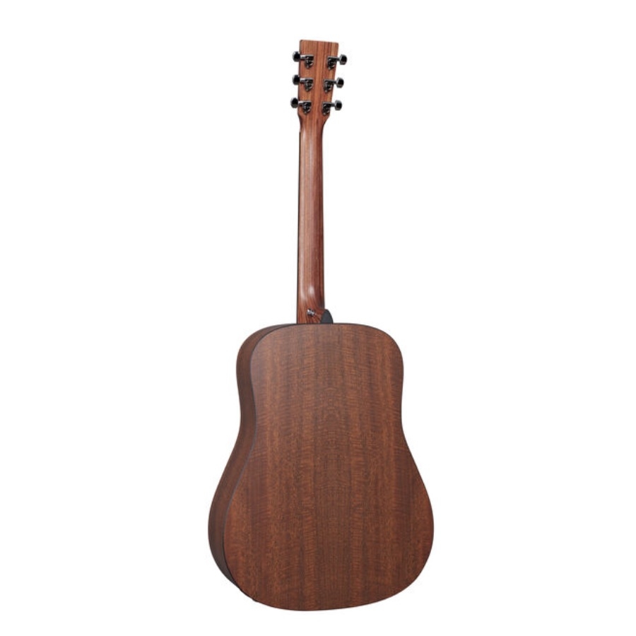 De D-X1E is een veelzijdige dreadnought gitaar met een uitstekende prijs/kwaliteitverhouding. De body is gemaakt van HPL. HPL bestaat uit meerdere houtvezellagen die met hoge temperatuur op elkaar worden geperst. Dit resulteert in een dunne maar een hele stevige plaat. Bovendien zijn de houtdeeltjes van HPL zo dicht op gezet dat er geen vocht of zonlicht tussen kan komen. Zodoende zijn HPL gitaren ideaal voor elk klimaat, zelfs hele droge of hele vochtige klimaten. Dit verlengt de levensduur van de gitaar en zorgt ervoor dat er weinig onderhoud aan de gitaar nodig is. Daarnaast is de toets gemaakt van richlite. Richlite is milieuvriendelijk materiaal wat uit gerecyclede houtsnippers en resin bestaat. Deze twee materialen gecombineerd resulteren in een soort kunststof, echter is dat niet te voelen. Een richlite toets voelt net zo aan als een toets van palissander of esdoornhout. Maar richlite is ook makkelijker qua onderhoud, want het hoeft niet schoongemaakt of geolied te worden. De gitaar komt met Fishman MX elektronica, wat ervoor zorgt dat de klank van de gitaar met een versterker net zo authentiek klinkt. De D-X1E is dus een veelzijdige en professionele gitaar waaraan weinig onderhoud gepleegd hoeft te worden.