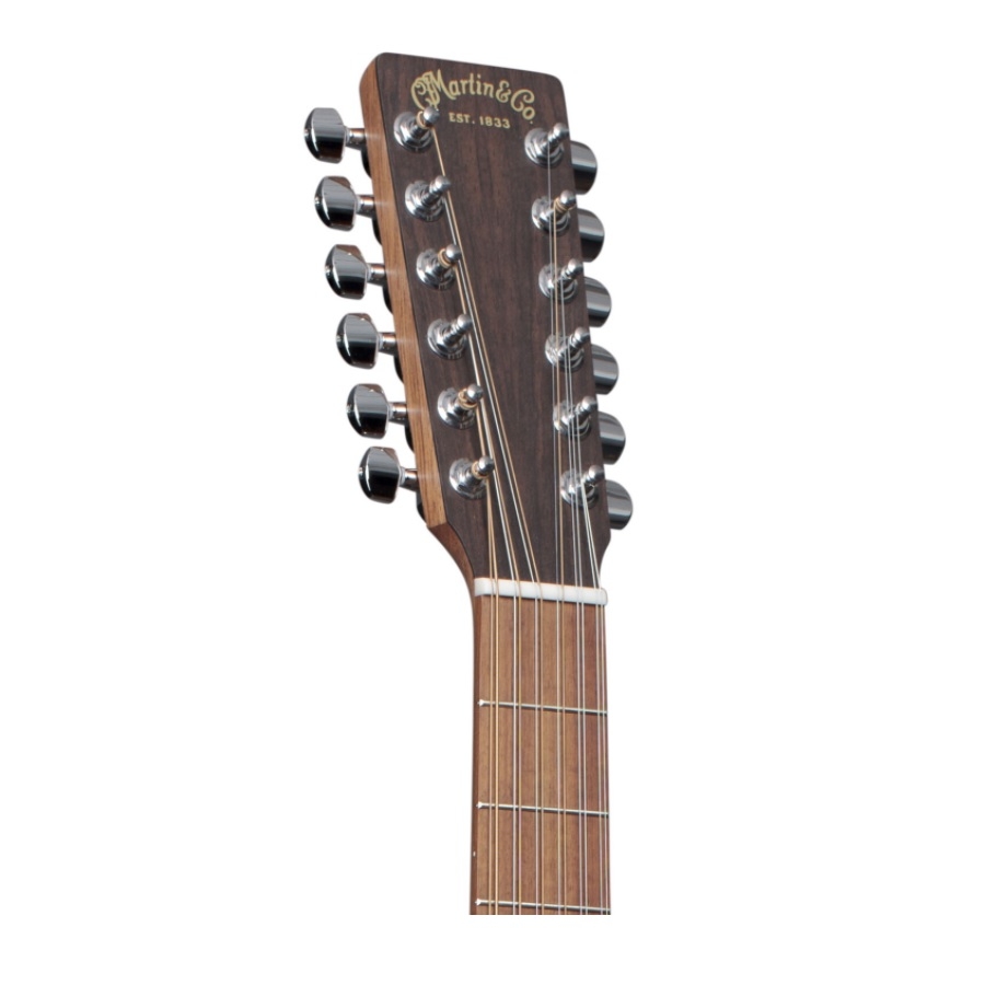 De D-X2E is gebaseerd op de zeer populaire D12X1AE van Martin. De D-X2E gitaren zijn dreadnought gitaren binnen de X-Series, waarvan dit model de 12-snarige gitaar is. 12-snarige gitaren produceren een enorm rijk en vol geluid. Ze hebben de standaard zes snaren van een westerngitaar, echter heeft elke snaar een tweede snaar die dezelfde stemming heeft in een ander octaaf. Voor elke snaar is dus een tweede snaar, waardoor er eigenlijk een dubbel geluid uit de gitaar komt. 12-snarige gitaren zijn daarom ook ideaal voor de enige gitarist binnen een samenspel, want het klinkt alsof er twee gitaren spelen. De D-X2E heeft een bovenblad die van sparrenhout is gemaakt. Sparrenhout zorgt voor een geweldige resonantie en produceert een warm geluid. De achter- en zijkanten zijn van HPL gemaakt. HPL bestaat uit drie houtvezelplaten die met hoge temperatuur op elkaar geperst worden. Dit proces creëert een hele dunne maar enorm sterke plaat. De vezels worden zo dicht op elkaar gedrukt, dat er ook geen zonlicht of vocht meer doorheen kan komen. Zodoende zijn HPL gitaren ideaal voor extreme klimaten. Gitaren van toonhout kunnen moeite hebben met hele droge of hele vochtige klimaten, terwijl HPL gitaren hier significant minder moeite mee hebben. Daarnaast hebben HPL gitaren weinig onderhoud nodig. De hals en de toets zijn gemaakt van ‘select hardwood’. Dit betekend dat de hals van cederhout of van mahoniehout is gemaakt, afhankelijk van welke houtsoort Martin geleverd kan krijgen zonder te hoeven participeren in ontbossing. Beide houtsoorten werken geweldig als toets en hals en er zit weinig verschil tussen qua speelervaring. De D-X2E wordt geleverd met Fishman MX elektronica, wat goede elementen zijn die de klank perfect opvangen en vertalen naar de versterker. Kortom, een geweldige 12-snarige gitaar voor een goede prijs!