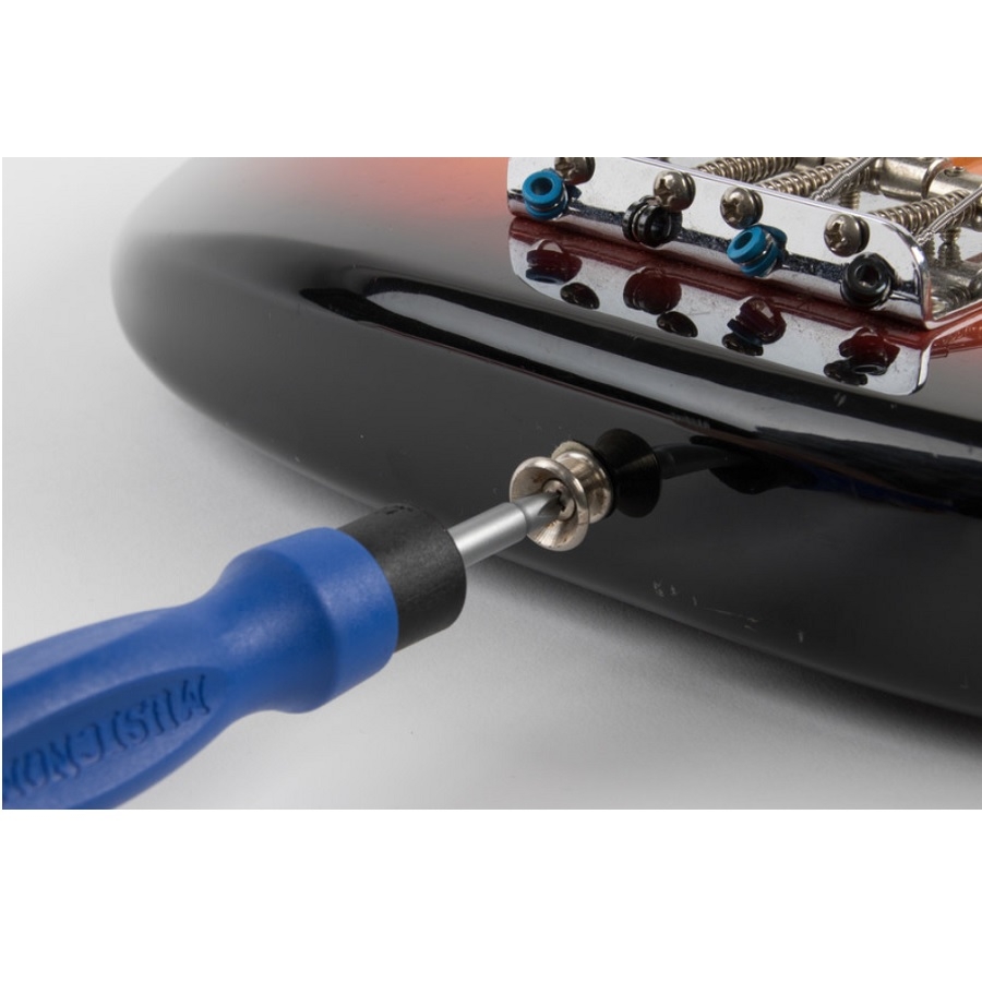 Dankzij de Music Nomad The Octopus 8 in 1 Tech Tool is het sjouwen met een stel schroevendraaier en moersleutels verledentijd. Het innovatieve ontwerp van Music Nomad is perfect voor het vast- of losdraaien van uitgangsaansluitingen, riemvergrendelingen, controlepots, bussen en schroeven van stemmachines. Het bevat zowel een kuiskopschroevendraaier als een platte schroevendraaier. Door het omkeerbare ontwerp bevindt zich aan de andere kant van de tool een speciaal ontwerp met populaire maten inbussleutels: 10mm, 12mm en 14mm. Oftewel deze tool is een musthave voor elke gitaarkoffer!