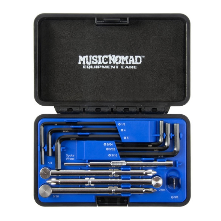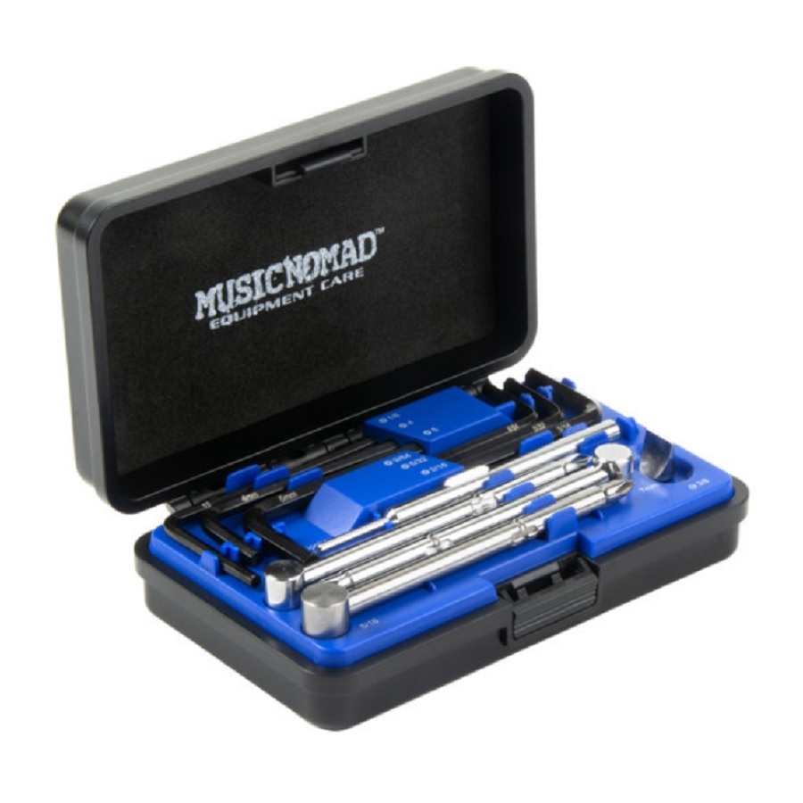 De Music Nomad Truss Rod Wrench Set biedt ongeëvenaarde veelzijdigheid en organisatie in een compacte, robuuste koffer. Deze set is speciaal ontworpen om te werken op de meeste elektrische-, akoestische- en basgitaren. De set wordt geleverd met 6 inbussleutelmaten, 3 dopsleutenmaten, een blade blit en een speciaal ontworpen spaakwielgereedschap.