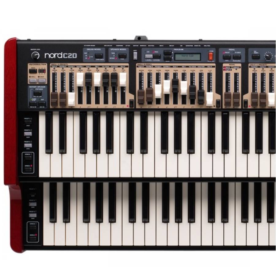 De Nord C2D is een portable orgel met ongekende mogelijkheden. Gekenmerkt als de Zweedse reproductie van de Hammond B3, beschikt dit orgel over zeer realistische orgelsimulaties. Bijbehorende versterkersimulaties en rotary karakteristieken zijn ook allen aanwezig. Twee sets fysieke drawbars per klavier zorgt voor optimale controlemogelijkheden. De C2D is een veelzijdig instrument, zo heeft u ook een prachtig gesampled pijporgelklank in Barokstijl tot de beschikking. Wat uiteraard niet mag ontbreken is een prettig klavier met een fijn toucher en daarom heeft Nord gebruik gemaakt van twee gerenommeerde Waterfall klavieren. Deze licht spelende klavieren reageren zeer accuraat en zorgen daarmee voor authentiek speelgevoel van een origineel instrument.