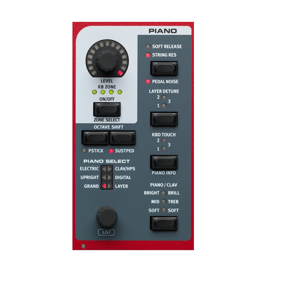 Nord beschikt over een uitgebreide selectie gesampelde pianoklanken. De klanken van authentieke vleugels, upright piano’s, elektronische piano’s en nog veel meer zijn allemaal te vinden in de Nord Piano bibliotheek. Klanken in deze bibliotheek zijn nauwkeurig met de hand uitgekozen vanwege de verschillende en unieke karakters. Bovendien worden deze klanken voortdurend bijgewerkt en dit blijft allemaal gratis downloadbaar. Via de Sound Manager kunnen de klanken gemakkelijk in de Nord worden geplaatst. De verbeterde pianoselectie in deze vijfde generatie heeft een verdubbeld geheugen van 2 GB waardoor meerdere samples van hoogwaardige kwaliteit ingeladen kunnen worden. Ook de klankpolyfonie is verdubbeld naar 120 stemmen! Ten slotte heeft Nord ook nog gewerkt aan de overgangen tussen verschillende settings, dit loopt nu veel vlotter waardoor er verandering vloeiend worden doorgevoerd.