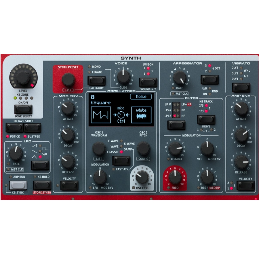 - Alle geluiden kunnen worden vervangen met behulp van Nord Sound Manager (Mac / Win)