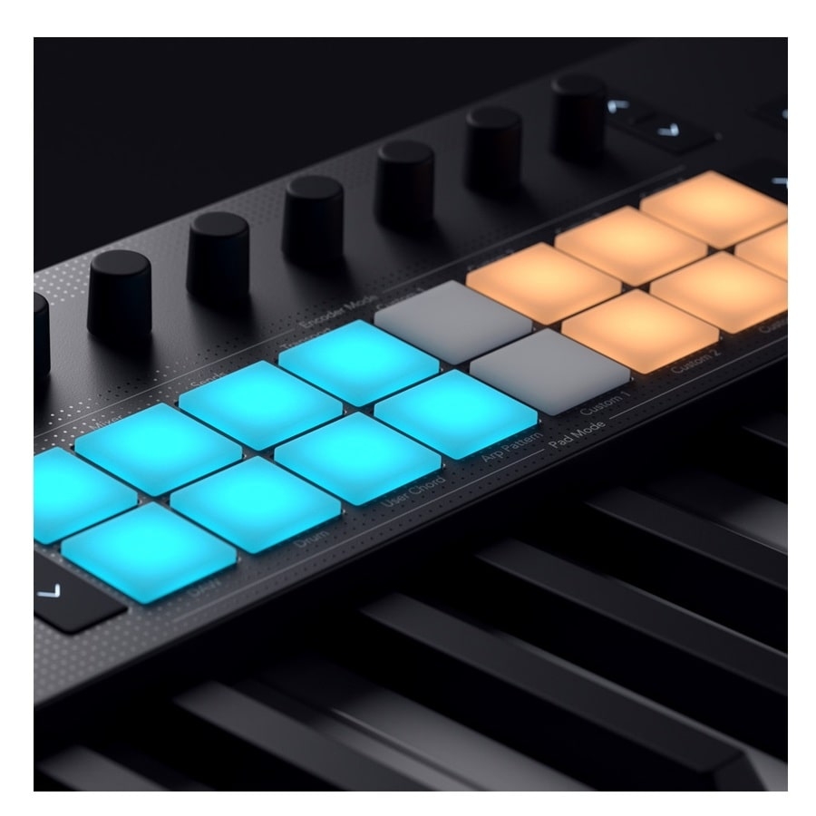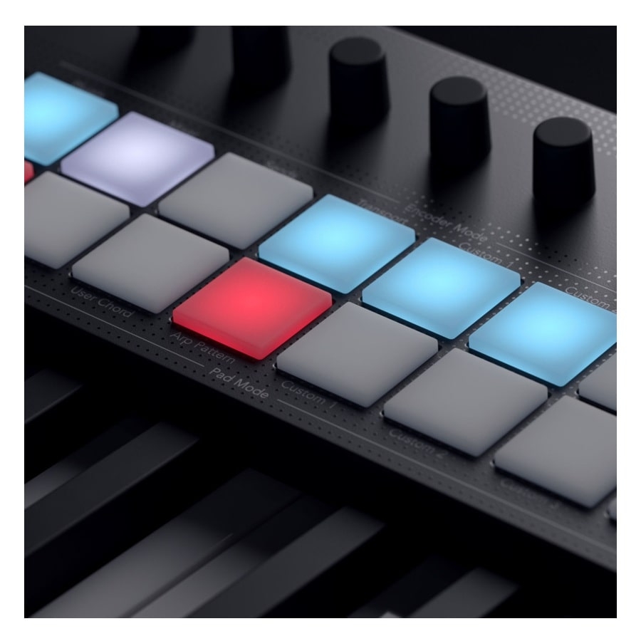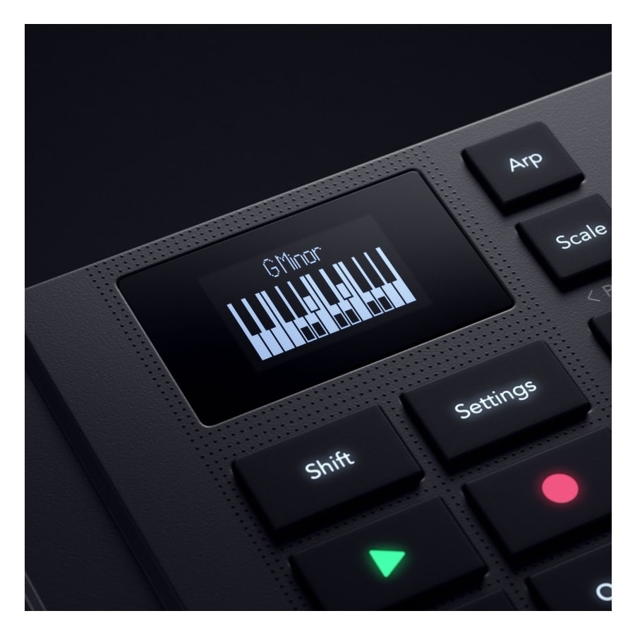 Bovendien is het een veelzijdig systeem. Naast de 37 keyboardtoetsen bevat het apparaat ook 16 pads die individueel in te stellen zijn, Scale Mode met wel 30 toonladders, een Chord Detector, en nog veel meer. De keyboard heeft een USB-C aansluiting, een 3,5mm MIDI-out, en een 6,35mm jack pedaalaansluiting.