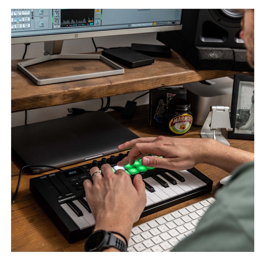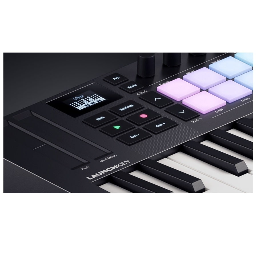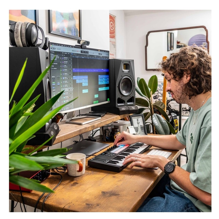De Launchkey Mini 37 MK4 is een geweldig MIDI-keyboard. Dit keyboard is compact en heeft maar 37 minitoetsen. Zodoende neemt deze weinig ruimte in en is ideaal voor de kleinere studioruimte. Novation heeft er ook voor gezorgd dat het systeem perfecte integratie heeft met alle grote opnameprogramma’s, waaronder Ableton, Logic, Cubase, Bitwig, Reason, FL Studio en Ardour. Daarnaast komt de Launchkey met een uitgebreide software bundel, inclusief Ableton Live 12 Lite, GForce Synths, Orchestral Tools, Klevgrand plugins en Melodics lessen.