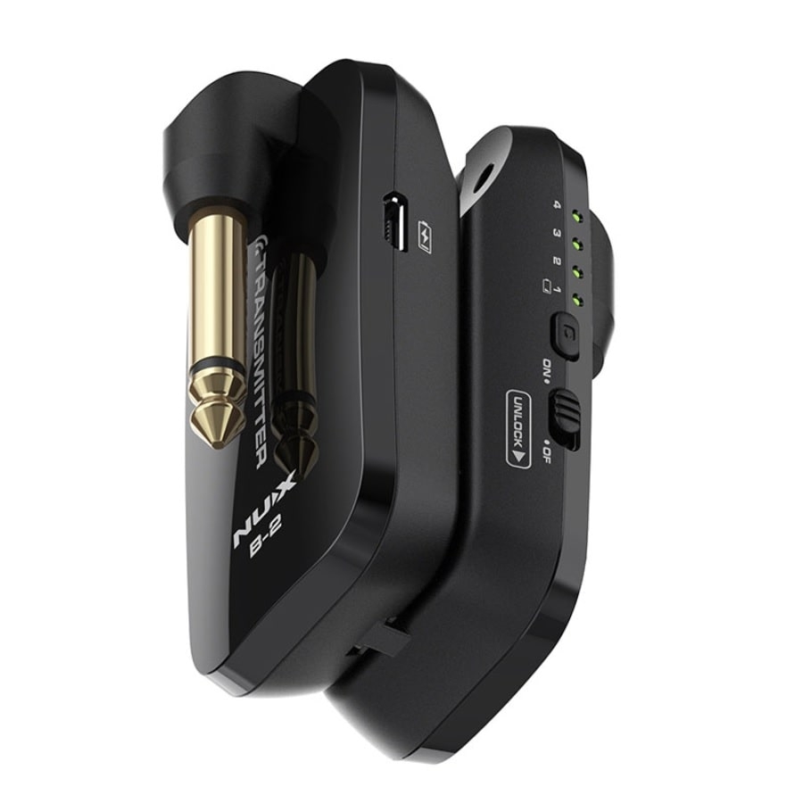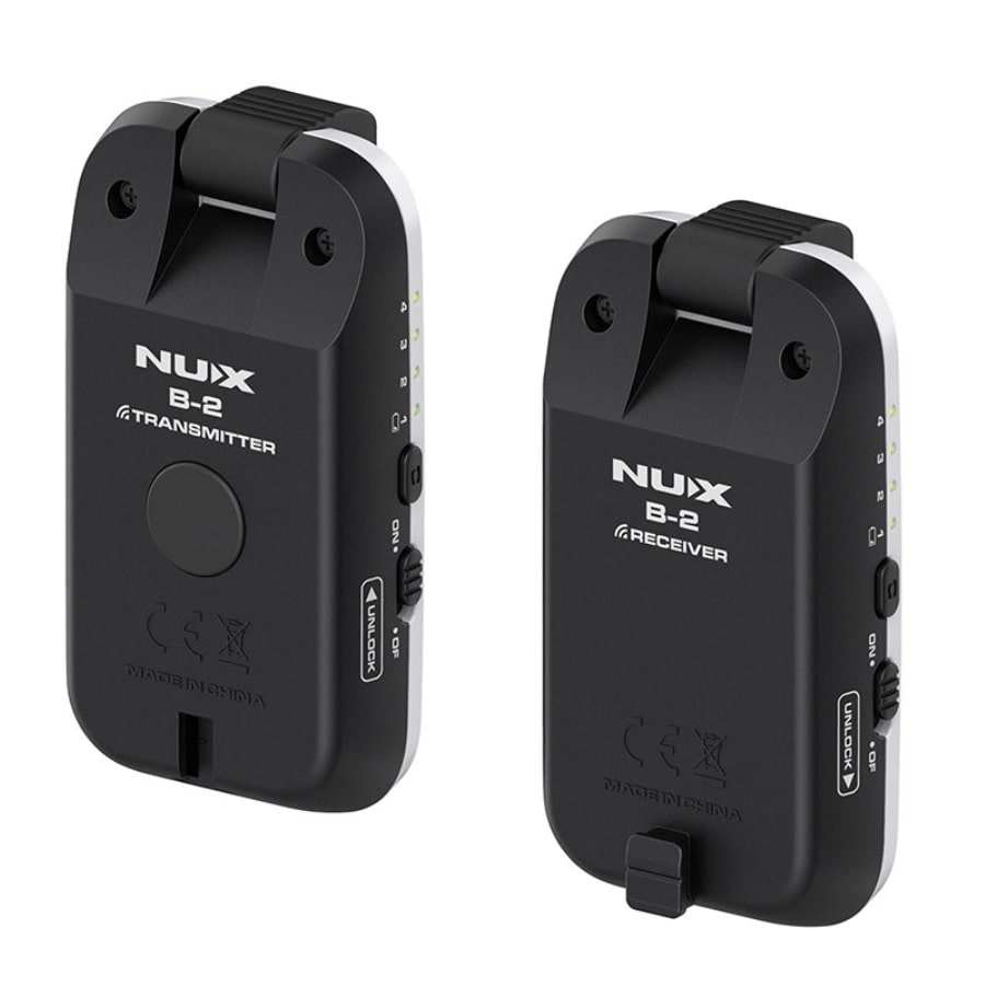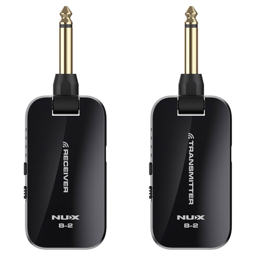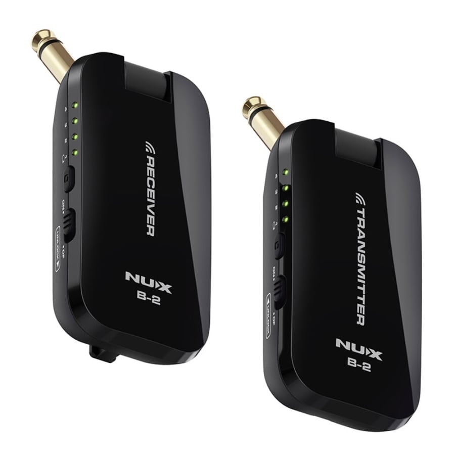 De B-2 is een handige draadloze connectie van NUX. Dit 2,4 GHz draadloos systeem is specifiek ontwikkeld voor een hoge kwaliteit connectie zonder interferentie. Dit draadloos systeem is niet alleen handig, maar NUX heeft er ook voor gezorgd dat het geluid zo vol en dynamisch mogelijk is, er is geen verschil tussen de B-2 en een hoge kwaliteit kabel. Het systeem is beide geschikt voor de gitaar en de basgitaar. Daarnaast laad het systeem heel snel op en kan heel lang mee. De batterijen kunnen tot 20 uur lang aanstaan en met constant spelen kan deze tot 6 uur mee. Als u dus niet speelt, gaat de B-2 in de slaapmodus waardoor de batterij beter bewaard wordt. Ook in het gebruik is de B-2 erg makkelijk. Het systeem bestaat uit een zender en ontvanger die in de gitaar en de versterker kan worden gestopt. Zorg ervoor dat beide de zender en de ontvanger op hetzelfde kanaal staan en u kunt gaan spelen. De zender past ook in elke gitaar! Het apparaatje kan gedraaid worden waardoor deze altijd op een comfortabele manier geplaatst kan worden. Gebruikt u de set niet? Dan kunnen ze in elkaar worden geschoven zodat u ze beter kan bewaren.