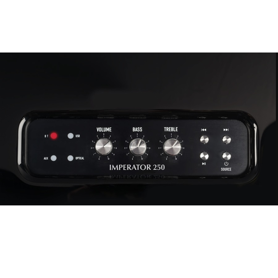 De Imperator 250 beschikt over twee 4 inch luidsprekers en heeft een vermogen van 100 watt. Naast de bluetooth-functie is het ook mogelijk om een audiobron aan te sluiten via USB. De speaker wordt geleverd inclusief microvezel doek zodat u deze goed kunt onderhouden en hij altijd staat te glimmen op uw piano.