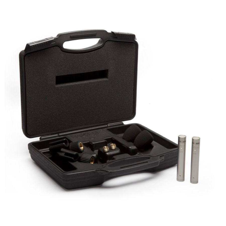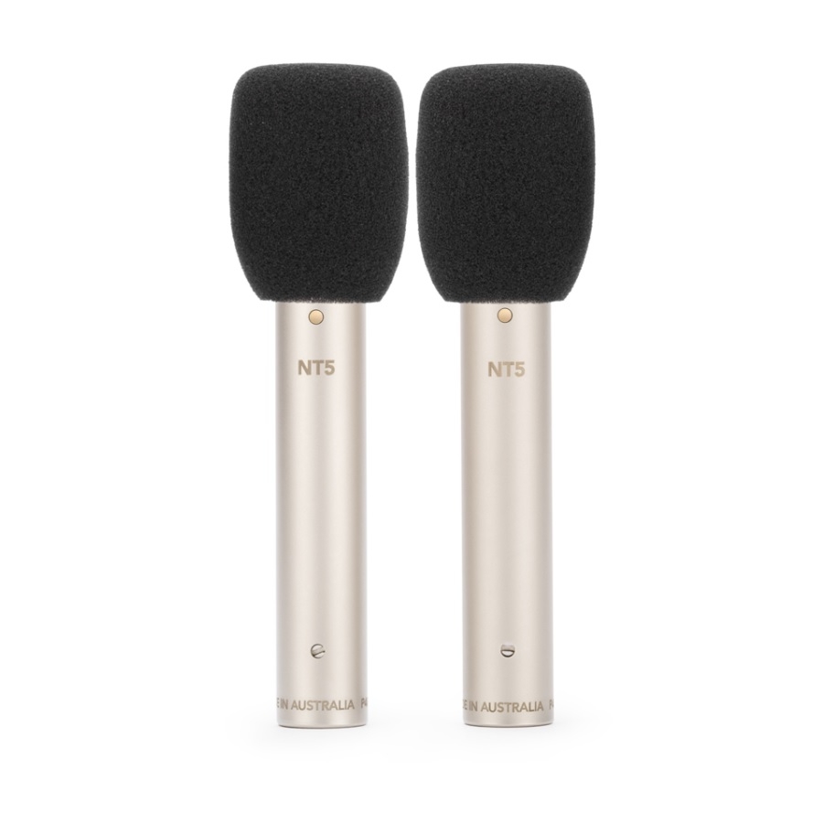 Meegeleverd: twee NT5 microfoons, twee klips, een koffer, twee windkappen.