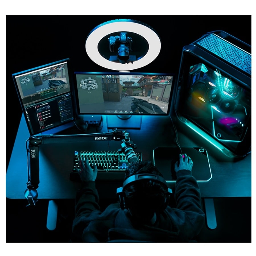 De PodMic kan gebruikt worden met de apart verkrijgbare Røde DS1 tafelstandaard of de Røde PSA1+ studio arm.