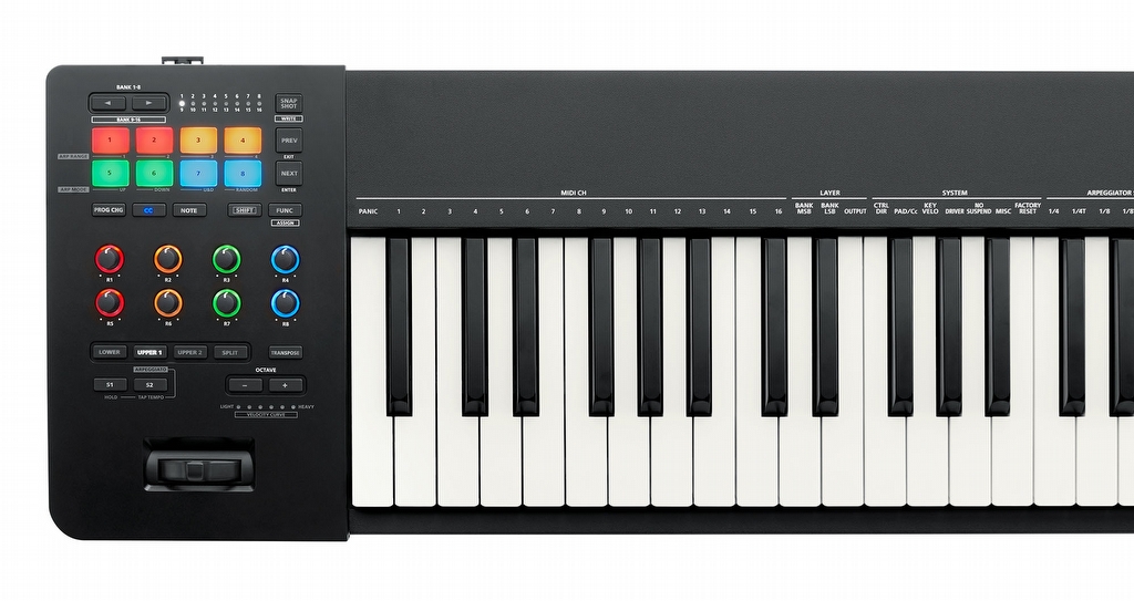 Roland, een van de medeoprichters van de originele MIDI standaard kondigt de nieuwe Roland A-88 MKII midi keyboard aan met veel nieuwe mogelijkheden die tot nu toe niet mogelijk waren. Waar veel midi keyboards voornamelijk bezuinigen op constructie en toetsen doet Roland het anders. Dit keyboard heeft een prachtige behuizing die erg stevig in elkaar zit. Tot aan de kleinste details ziet en voelt dit keyboard als een echt Japans kwaliteitsproduct. Ook met de toetsen heeft Roland groot uitgepakt. Het Ivory Feel-G-klavier met Escapement en 88 toetsen is zorgt voor een prettige speelaard. Het kunstivoren laagje op de bovenkant geef structuur aan de toets en geeft u als pianist maximale grip. Dit maakt de A-88 ondanks zijn formaat aanvoelen als een echte vleugelpiano.
