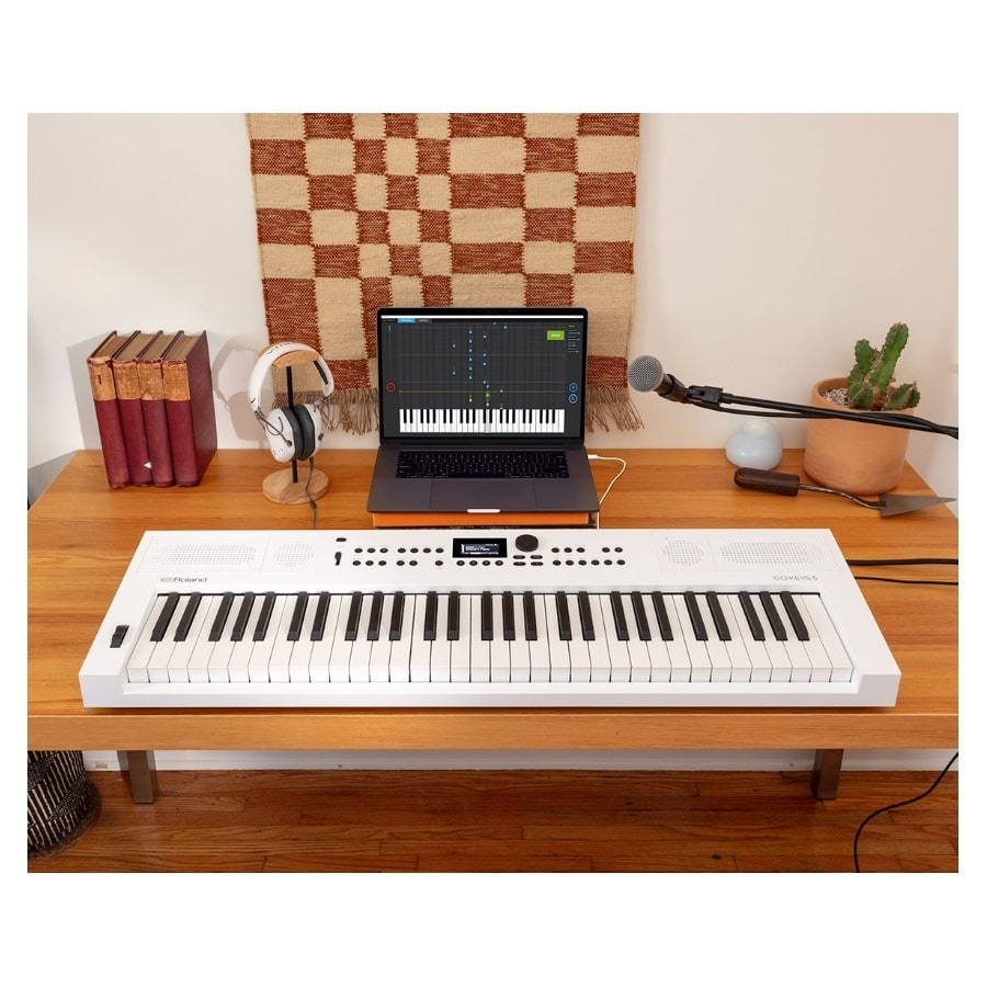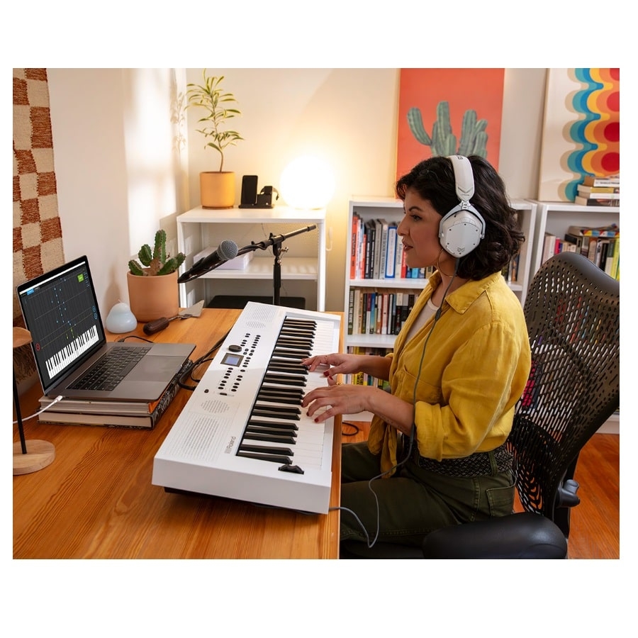 Het systeem werkt via de meegeleverde adapter, maar kan ook gebruikt worden met acht AA-batterijen. Wilt u graag meespelen met uw favoriete muziek? Geen probleem! Het systeem heeft namelijk een Bluetooth-functie waardoor u hier uw smartphone of laptop op aan kan sluiten. Daarnaast is de GO:KEYS 5 ook bruikbaar als een MIDI-keyboard via de MIDI-aansluiting. Verder kunt u ook een pedaal en een microfoon op het keyboard aansluiten. Het keyboard heeft ook ingebouwde stemeffecten. Als laatst is een enorm belangrijke functie van de GO:KEYS 5 dat deze als een USB-interface kan gebruiken, waardoor u deze direct op uw opnamesoftware aan kan sluiten en uw spelen op kan nemen. Wilt u de geluidmogelijkheden uitbreiden? Geen probleem! U kunt de WC-1 adapter (los verkrijgbaar) aanschaffen waardoor u toegang krijgt tot de Roland Cloud Connect.
