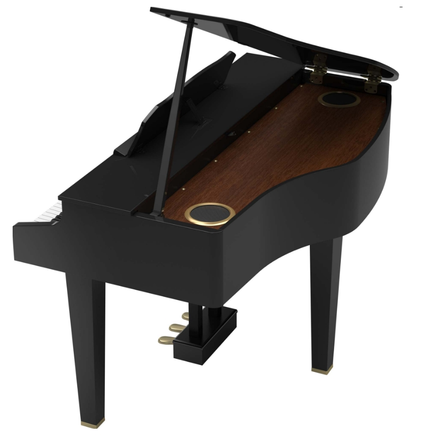 De Roland GP-607PE is een stijlvolle minivleugel die erg geschikt is voor plaatsing in de woonkamer. Deze chique hoogglans zwarte vleugel biedt u de beleving, het speelgevoel en de uitstraling van een echte vleugel, maar behoeft niet het frequente onderhoud. Bovendien biedt het instrument met klassieke look de mogelijkheid om geruisloos te spelen via een hoofdtelefoon. De klanken zijn door de ruime technologische ervaring van Roland van zeer hoogstaand niveau en u zult gegarandeerd wegdromen hoe deze klanken worden geprojecteerd door het geavanceerde speakersysteem. De minivleugel is ook leverbaar in het hoogglans wit.