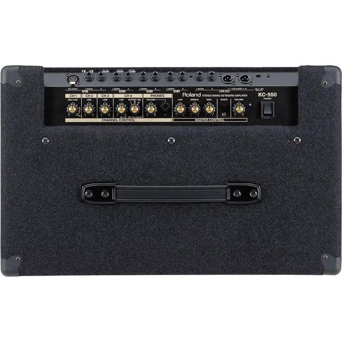 De KC550 heeft 180 watt vermogen, een 15" speaker en hoorn tweeter. Naast de vier ingangskanalen heeft dit vlaggenschip onder de keyboardversterkers een Output Select schakelaar voor het sturen van het monitorsignaal.