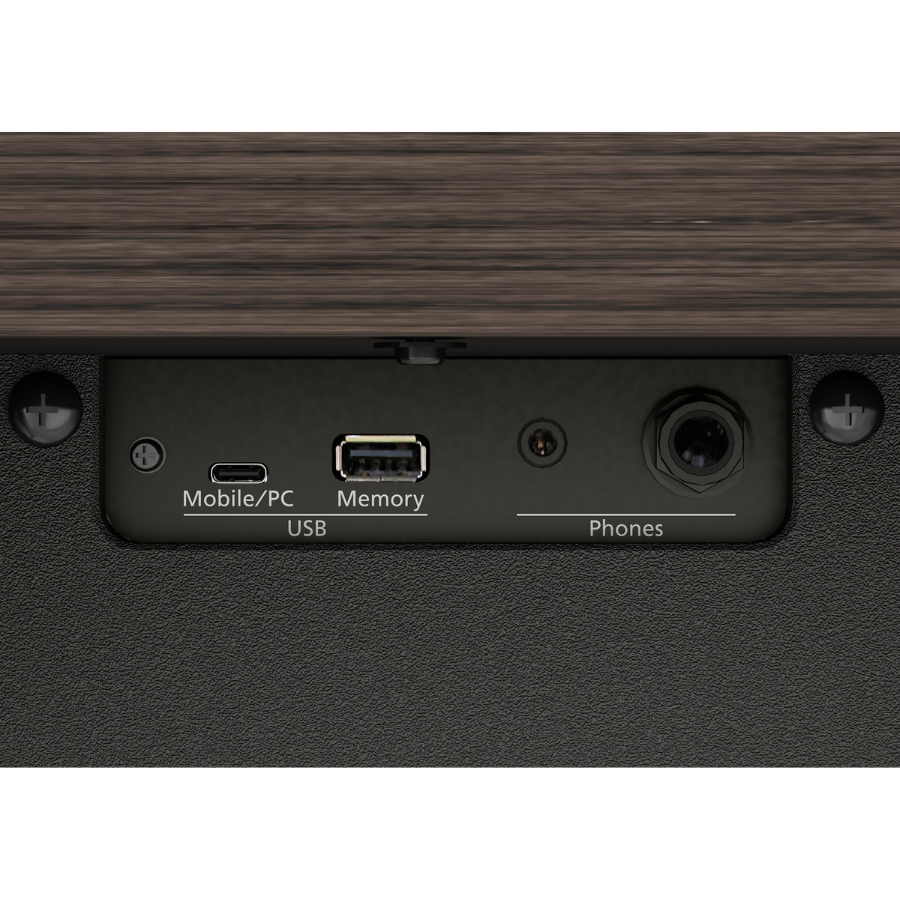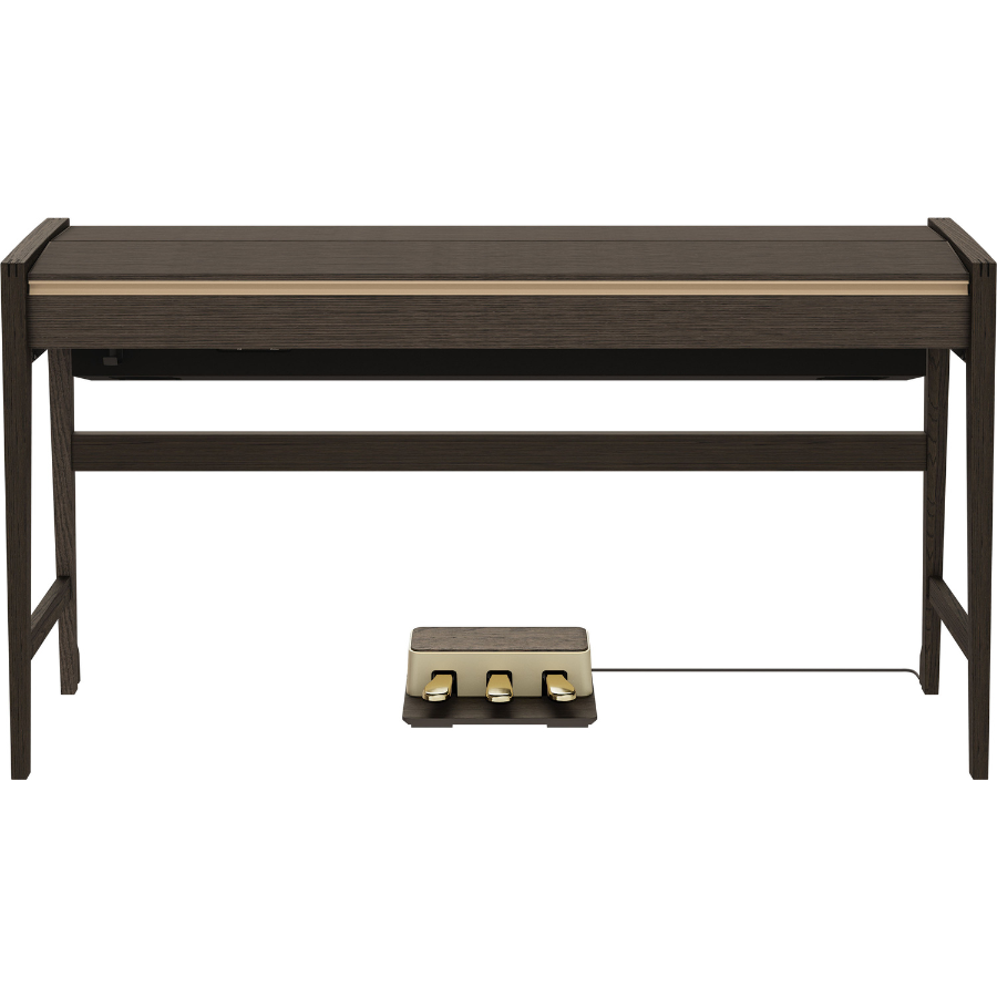 De piano is vormgegeven volgens Sashimono craftsmanship. Strakke, rechte lijnen geven de piano een rustige, ingetogen uitstraling. Houten (smoaked oak) panelen worden in precieze rechte hoeken verbonden zonder spijkers of schroeven, met behulp van de traditionele Kanzashi joint. Dit zorgt voor een solide, stabiele constructie en een tijdloos ontwerp. Het klavier reageert nauwkeurig op elke aanslag en vertaalt subtiele verschillen in dynamiek direct naar klank. Hierdoor voelt de piano natuurlijk en expressief aan, ongeacht speelstijl of niveau. Ook langere sessies blijven comfortabel dankzij de ergonomische indeling en responsieve aanslag, waardoor de KF-25 geschikt is voor zowel beginners als gevorderden.