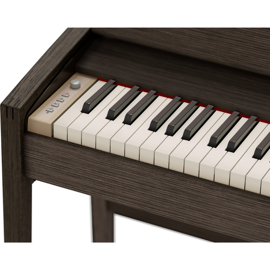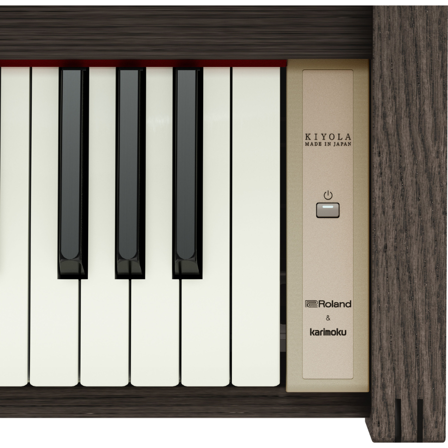 Kiyola betekent vrij vertaald elegantie en schoonheid. Dat zie je terug in de Roland KF-25: een digitale piano die een strakke, minimalistische uitstraling combineert met een hoogwaardige speelervaring. De KF-25 is ontwikkeld in samenwerking met de Japanse meubelfabrikant Karimoku. De houten meubelbasis wordt met de hand vervaardigd door traditionele houtbewerkers, waarna Roland het instrument voorziet van geavanceerde digitale pianotechnologie. Zo ontstaat een instrument waarin vakmanschap en moderne techniek perfect samenkomen.