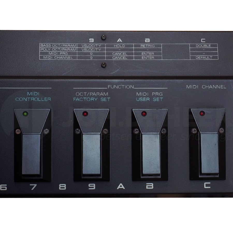 - Bediening met één voet van vier afzonderlijke prestatiemodi: bas, poly, drums, SFX