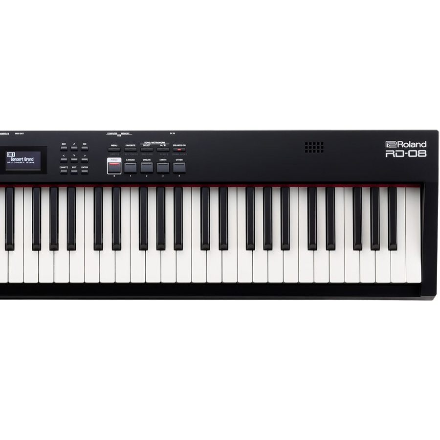 Met zo'n compacte behuizing zou je denken dat Roland een heel klein klavier in de RD-08 heeft gestopt. Gelukkig is dit niet het geval! Roland heeft zijn populaire PHA-4 klavier gebruikt bij RD-08. Dit kunststof klavier heeft een echte hammer-action en uitstekende expressie, waardoor je uitstekend piano kunt spelen.