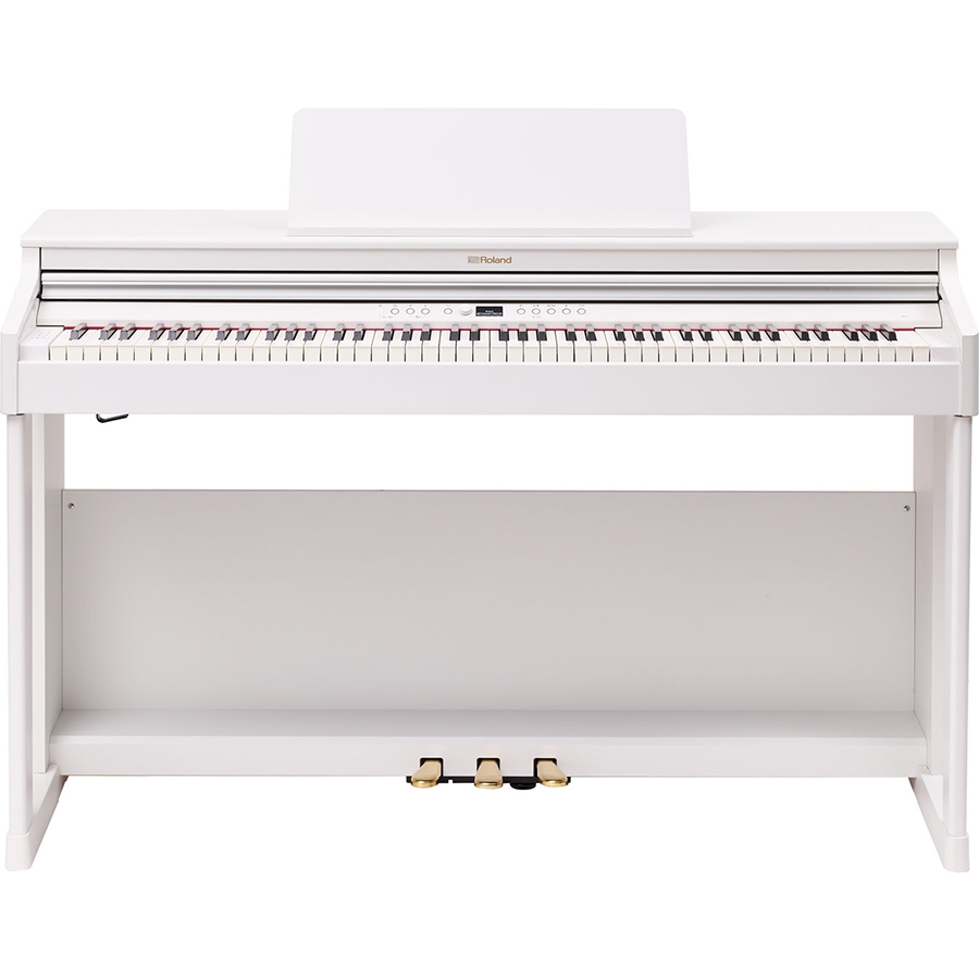 Het eerste wat opvalt aan de RP701 is de bijzonder mooie kast. Het is al snel duidelijk dat Roland dit ontwerp erg heeft afgeleid van de duurdere HP en LX modellen. De moderne rechte lijnen aan de zijkanten van de kast, in combinatie met de rond afgewerkte voorpoten maken de RP701 een compleet plaatje. Ook de kleuren hebben een update gekregen met keuzes uit, zwart, wit, licht eiken en zelfs palissander! Als u dichtbij de piano komt ziet u al snel hoe netjes de afwerking is gedaan. Met een mooie houten afwerking waar de nerven goed zichtbaar zijn, is dit zeker een prachtig meubel voor in de woonkamer!