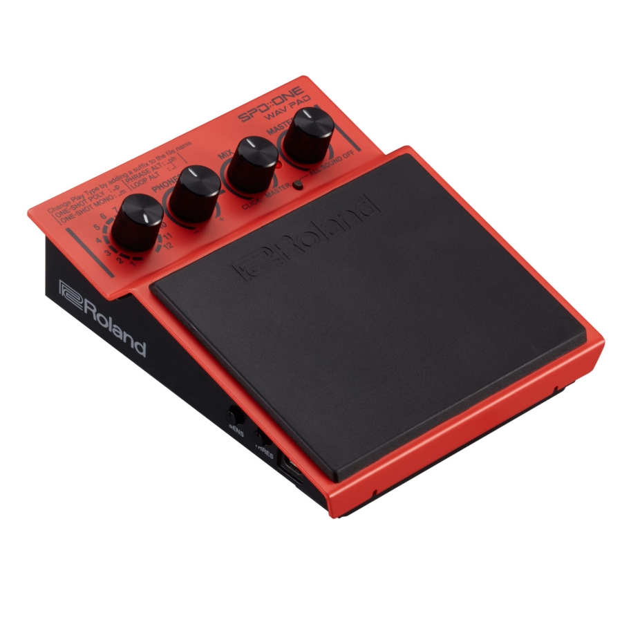 De Roland SPD::ONE WAV PAD is een gloednieuwe digitale percussiepad, die het voor muzikanten mogelijk maakt om met hun eigen sounds en samples te performen. Geluidsbestanden importeren is heel simpel: verbind de SPD::ONE WAV PAD met een PC of Mac en sleep je WAV-bestanden naar de externe drive die op je computer verschijnt. Het maakt niet uit of je nu op zoek bent naar complete begeleidingstracks of enkelvoudige samples: op enkele seconden tijd zijn je sounds ingeladen en speelklaar. Eenmaal je klaar bent met inladen, kan je de robuuste maar aanslaggevoelige pad bespelen met sticks, handen of voeten. De trigger treshold-instellingen kunnen makkelijk aangepast worden met intuïtieve bedieningsknoppen.