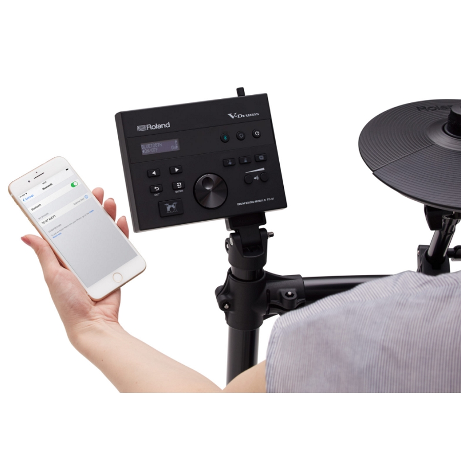 De module is tevens voorzien van de nieuwste mogelijkheden zoals een Bluetooth functie. Dit maakt het mogelijk om uw drumstel te verbinden met smartphone of tablet en vervolgens draadloos uw favoriete nummers af te spelen en fanatiek mee te drummen. Uiteraard is het ook nog mogelijk om via een audiokabel een muziekapparaat te verbinden.