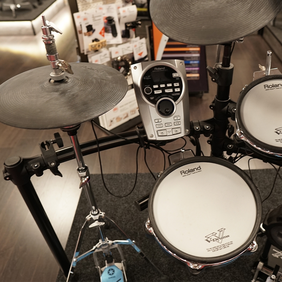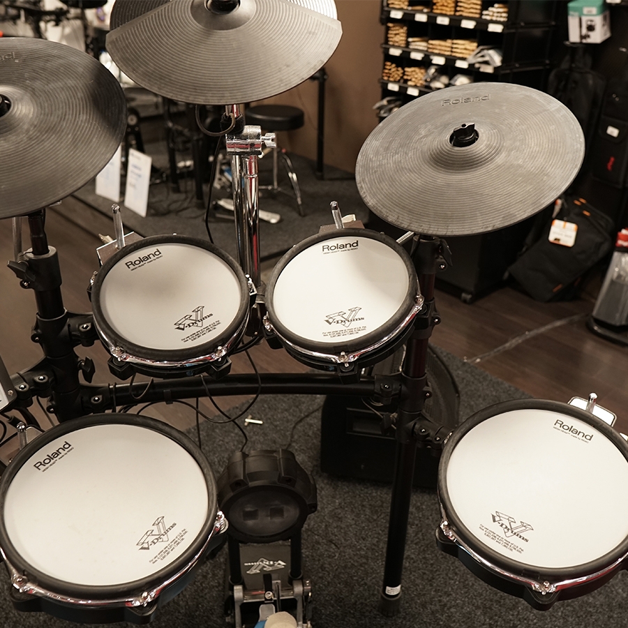 Mooi en in erg nette staat verkerende Roland TD-15KV Occasion digitaal drumstel. Het drumstel staat bij ons opgesteld in de showroom en is technisch 100% in goede staat en deze wordt door ons dan ook geleverd inclusief 12 maanden garantie. Hardware zoals het hihatstatief en bassdrum pedaal zijn optioneel verkrijgbaar.