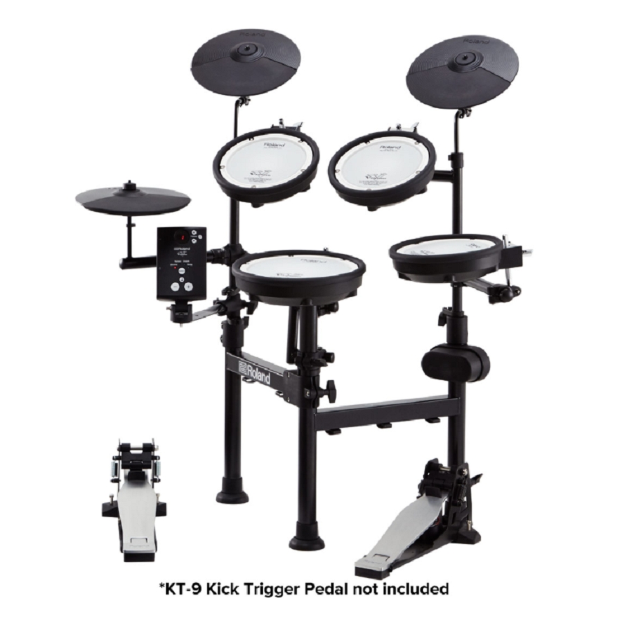 - De befaamde Roland mesh-head V-Pads voor snare en alle toms voorzien een geweldig speelgevoel en een natuurlijke respons