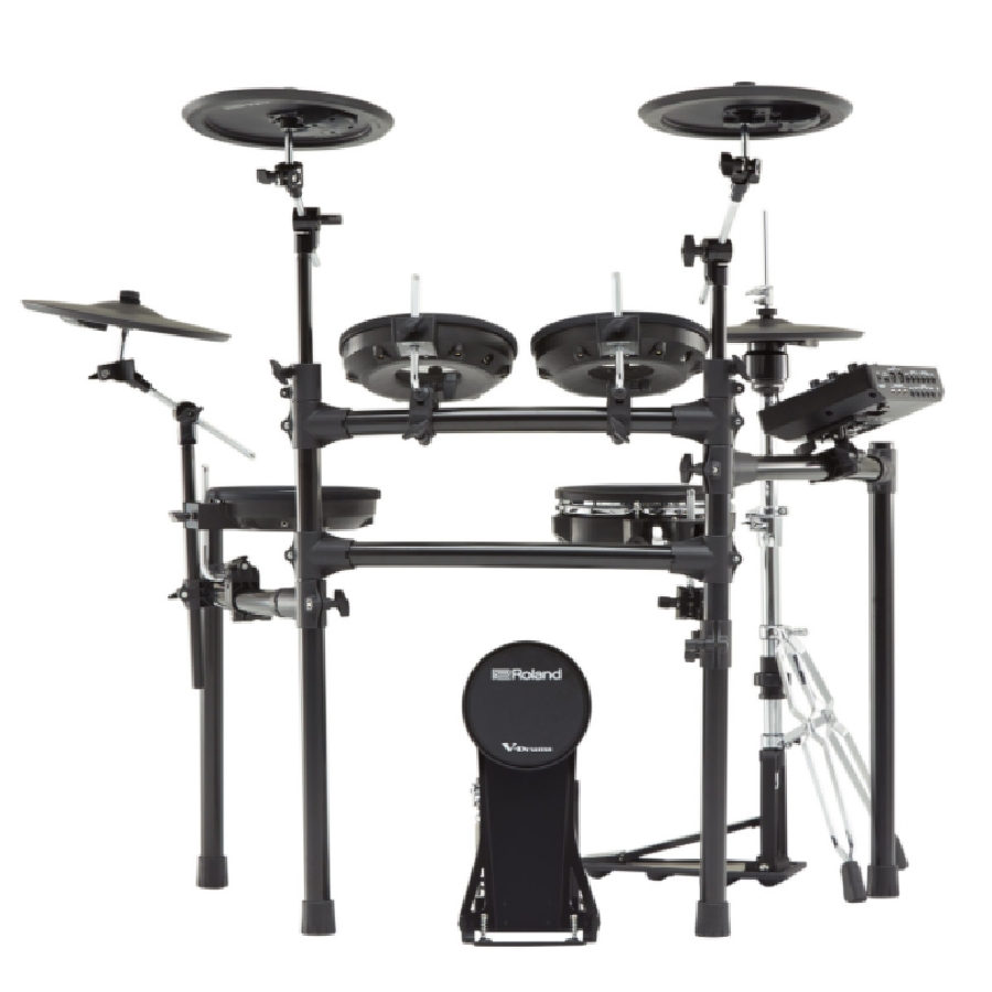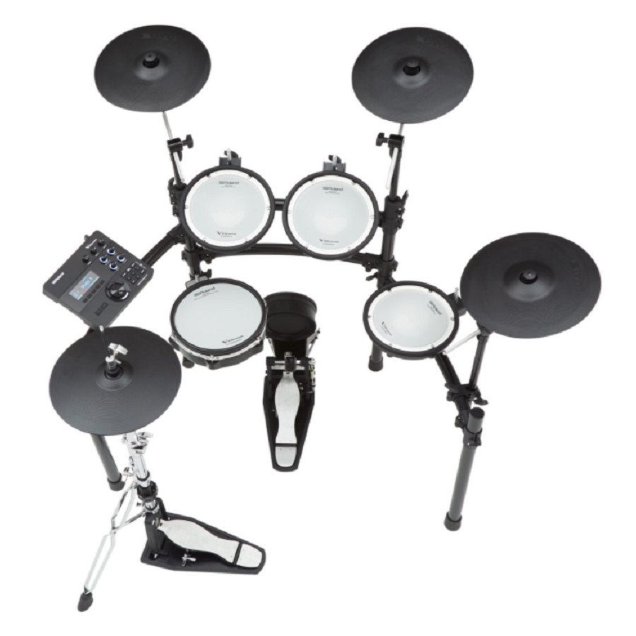 Zoals eerder vermeld is de configuratie iets eenvoudiger uitgevoerd, maar nog steeds van topkwaliteit. Uiteraard zijn de snaredrum en alle toms voorzien van de alom geprezen gaasvellen die zich onderscheiden in speelcomfort. De 10 inch snaredrum heeft een geavanceerde dual-trigger sensor, een metalen hoepel, een vel met regelbare spanning, en een compacte behuizing. De VH-10 V-Hi-Hat is gemonteerd op een traditionele hi-hat standaard en biedt open/gesloten-bewegingen en bow/edge-geluiden voor de perfecte uitvoering van klassieke speeltechnieken. Last but not least is er de KD-10 Kick Pad, die een natuurlijk aanvoelend stoffen vel en een rotsvaste respons biedt.