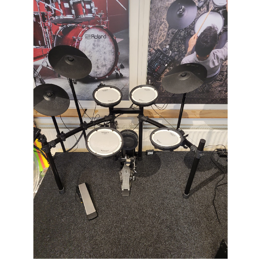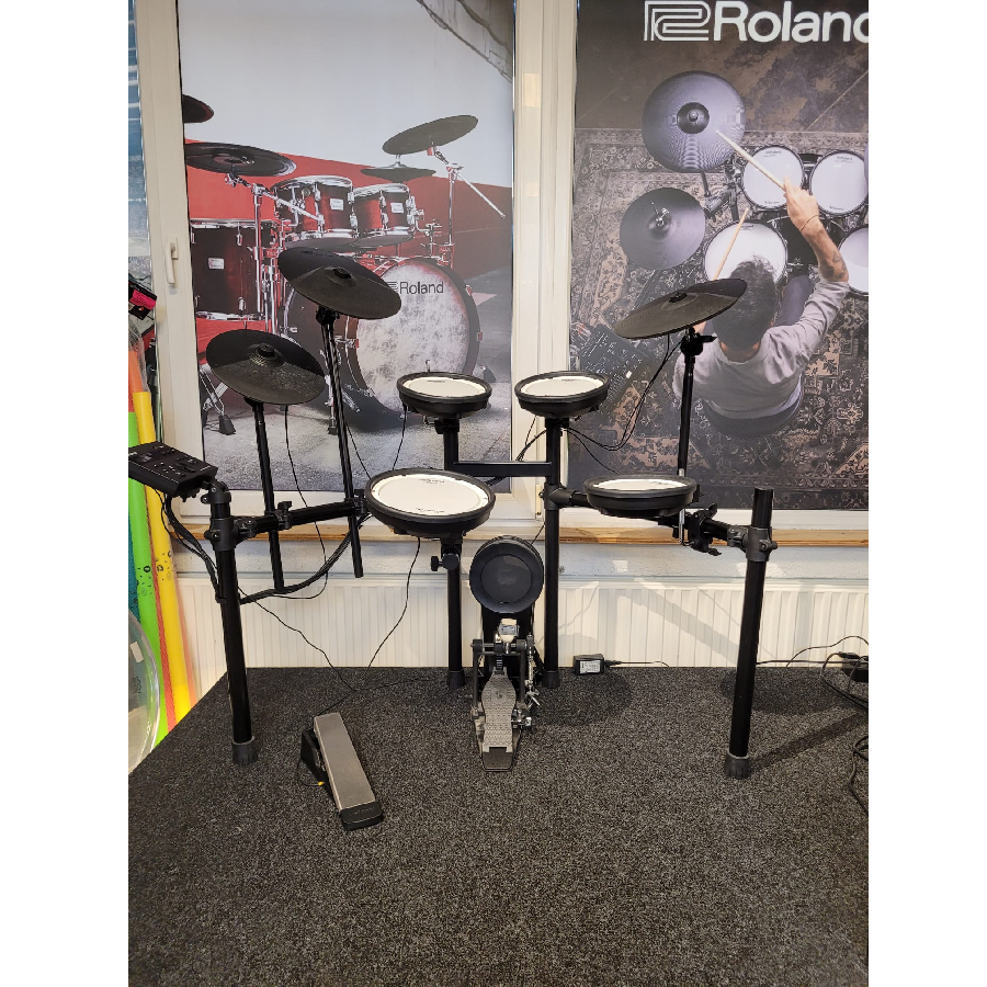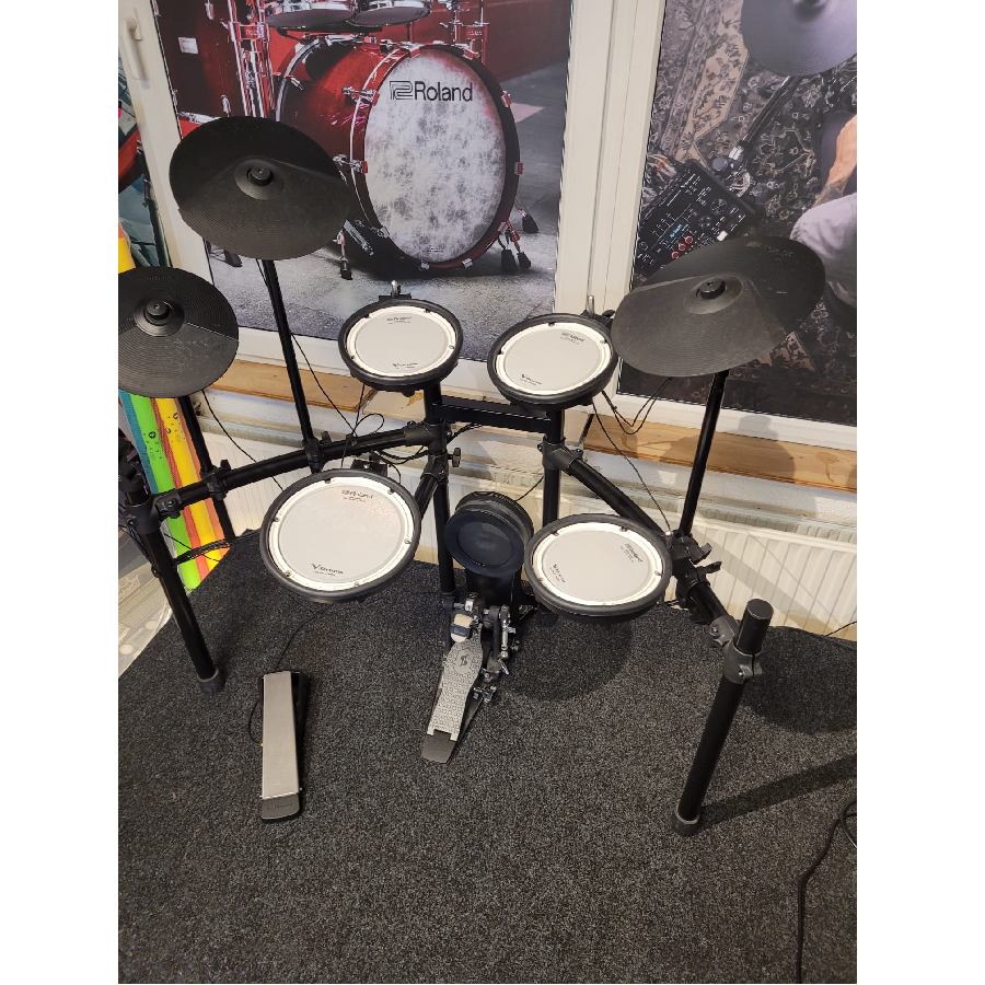 Deze Roland TD-07KV is in uitstekende staat. Deze drumkit wordt geleverd inclusief pedaal en drumkruk en daarbij ook nog 12 maanden garantie.