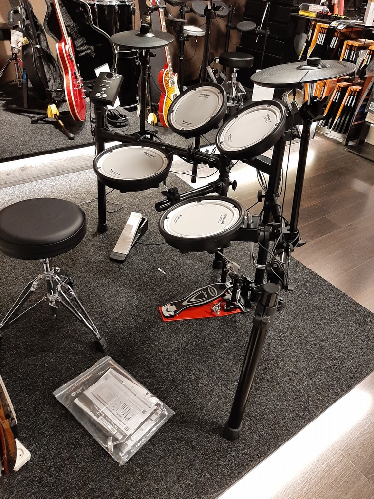 Als je er altijd al van gedroomd hebt om drums te spelen, weet je hoe krachtig die ambitie is. Het idee is opwindend. Maar misschien krijg je het gevoel dat drums leren spelen te moeilijk is? Hoewel je zeker wat moeite moet doen, is het echter niet zo moeilijk als je denkt om een strakke drummer te worden. Als je (met je vingers) in de maat van de muziek kunt tikken, heb je al een intuïtief begrip van de grondbeginselen van ritme... je hoeft alleen nog maar de volgende stap te zetten. Roland V-Drums zijn 's werelds populairste elektronische drums, dankzij hun krachtige geluid, geweldige speelgevoel en legendarische duurzaamheid. En als je meent dat drummen in je bloed zit, dan zal de nieuwe V-Drums TD-1DMK je helpen om dat talent te vinden. De TD-1DMK biedt een bevredigende drumervaring in een compacte kit die makkelijk verplaatsbaar is. De eenvoudige, maar krachtige module bevat een verscheidenheid aan expressieve drumkits, aangesloten op Roland's double-mesh pads voor snare en toms. Deze pads gebruiken twee lagen met mesh-materiaal, voor een realistische 'rebound' (waarbij de drumstick terugkaatst na het raken van de trommel), net zoals bij een akoestische kit. Hoewel deze drums duurzaam zijn, zijn ze ook stil om op te spelen, en geweldig voor oefensessies laat op de avond. Je kunt met een hoofdtelefoon spelen, zonder daarbij familie of buren te storen. En met de ingebouwde coach-functies, en de mogelijkheid om verbinding te maken met Melodics drum-trainingssoftware, zul je verbaasd zijn over hoe snel je vooruitgang boekt. Raap de sticks op, haal diep adem en begin te spelen op de TD-1DMK. Levenslang drummen ligt binnen handbereik. Dus waar wacht je nog op?