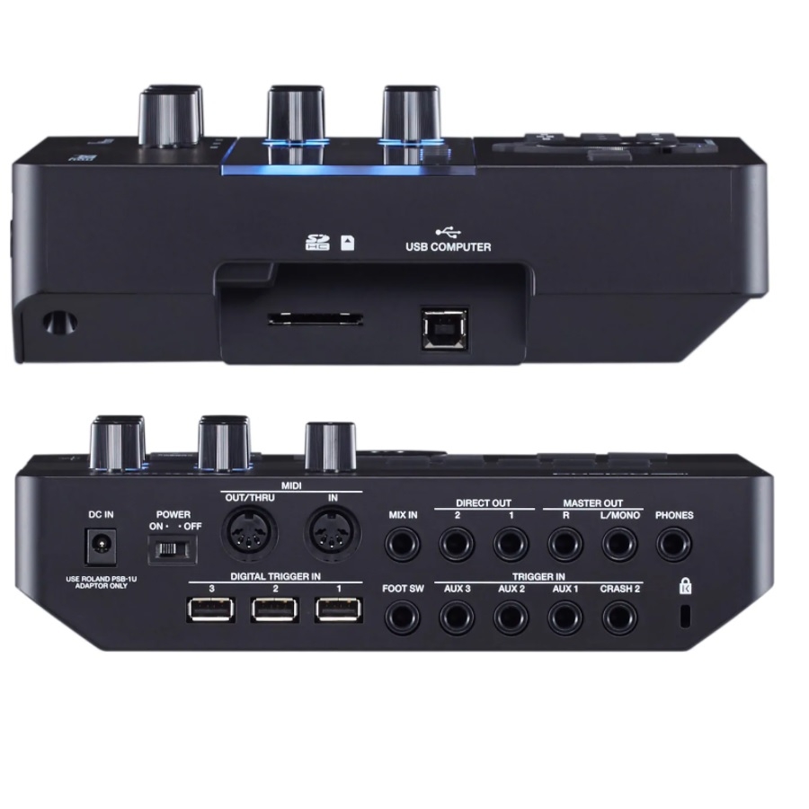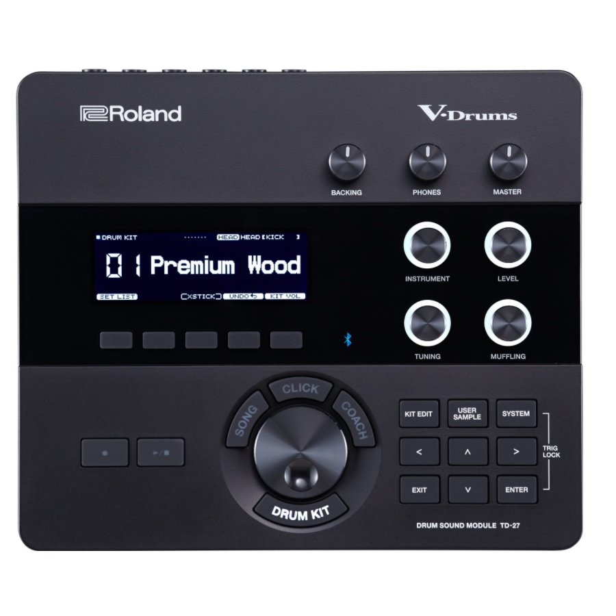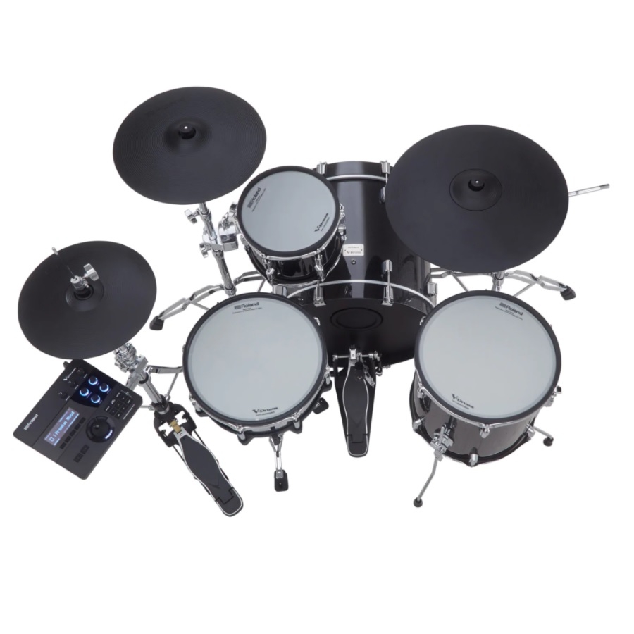 Zodoende ook de VAD503. De ketels van de drums zijn gemaakt van hout, de hardware van chroom en de vellen van hun typische mesh. De statieven zijn dubbel verstevigd, om schade te voorkomen. Roland heeft ervoor gezorgd dat de vellen een geweldige respons hebben, zo vangen ze alles op. Bovendien hebben de drums een dual-zone pad voor onafhankelijke vel- en rand triggering. Daarnaast hebben de drums hoogwaardige sensortechnieken, waardoor de aanslag net zo klinkt als bij een akoestische set. De pads worden via USB-kabels aan de module aangesloten. De dubbellaagse mesh-vellen met de aanpasbare spanning zorgen voor een authentiek speelgevoel, waardoor het niet voelt alsof u op een digitale set speelt, maar juist op een akoestische set. Dit drumstel bootst dus het uiterlijk, de speelervaring en het geluid van een akoestische set na. Echter krijgt u er dan ook de voordelen van een digitaal drumstel erbij. Zo is de set makkelijker te vervoeren, is de set veelzijdiger, is het geluid makkelijker op te nemen, is het volume aanpasbaar (hoofdtelefoon ook mogelijk) en compacter dan een akoestische set. Bovendien is het erg makkelijk om met de TD-27-drummodule aanpassingen te maken en aparte functies te gebruiken. U kunt ook uw eigen samples downloaden/inspelen en op te slaan. Het drumstel heeft een ingebouwde Bluetooth-verbinding, het is dus mogelijk om een telefoon of laptop aan te sluiten. Het is ook mogelijk om aparte pads/drums aan te schaffen en op de module aan te sluiten, om uw set uit te breiden. Deze module is ook in andere sets verkrijgbaar, zoals de TD-27KV, voor als u liever een moderner uiterlijk heeft. Kortom, een perfecte balans tussen akoestische en digitale drumstellen!