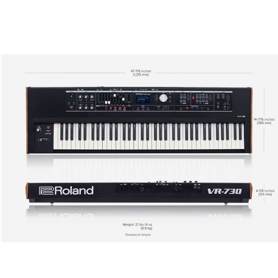 De VR-730 is een gestroomlijnd keyboard met een klassiek uiterlijk. Helemaal toepasselijk in de wereld van de orgels zijn de echt houten zijpanelen en de matte afwerking van het bedieningspaneel. Kortom dit portable orgelkeyboard ziet er zeer gestroomlijnd uit. Boven alles is deze met 9,9 kilo ook nog een zeer licht waardoor vervoer naar podia en oefenruimtes zeer gemakkelijk is. Met het overzichtelijke en gemakkelijke bedieningspaneel is de VR730 bovendien ook een echt podiumbeest. Met specifieke knoppen is er een directe toegang tot alle belangrijke geluiden en instellingen. Ook effecten en andere parameters zijn met bijhorende knoppen met een minimale inspanning aan te passen. Hetzelfde geldt voor functies als splits en layers.