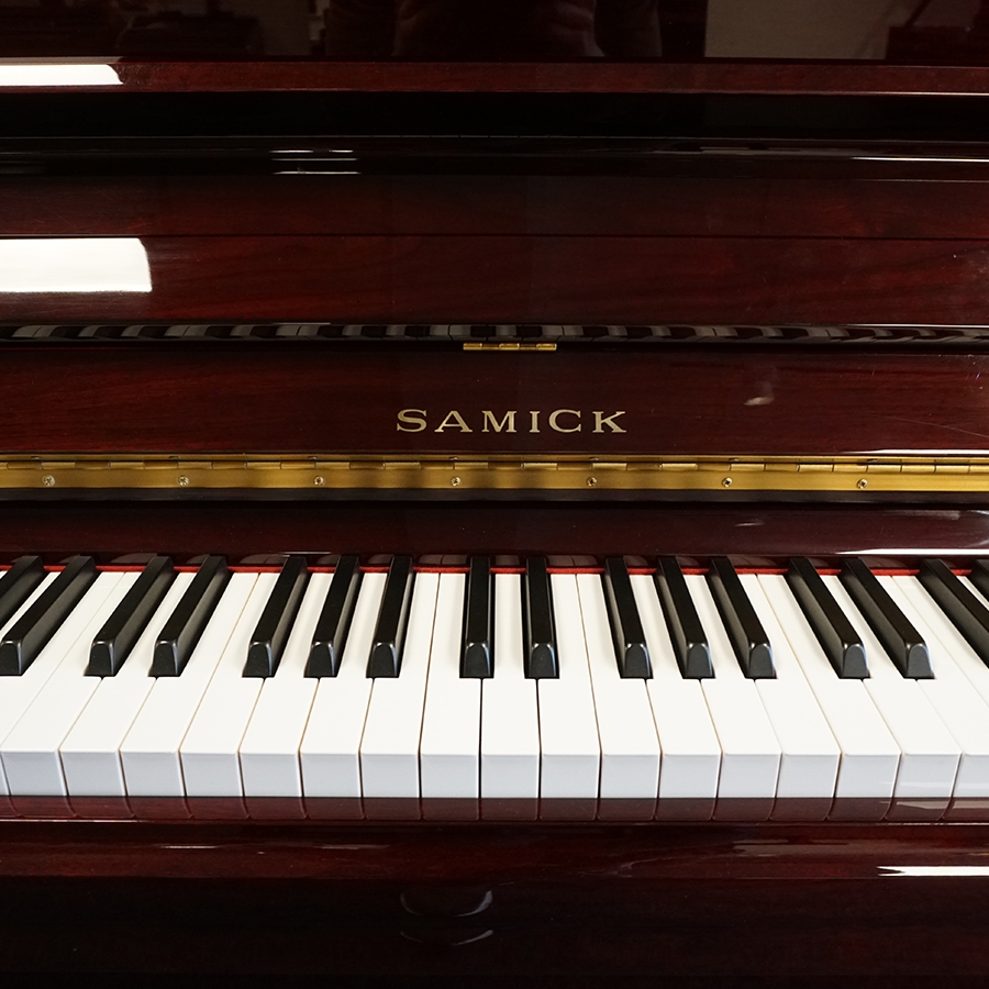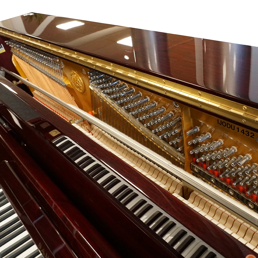 De Samick JS-121 is een zeer elegante piano in klassieke uitvoering. Het mooie mahonie hoogglans houten meubel verkeert in onberispelijke staat. De sierlijke rondingen en details maken deze Samick piano een ware lust voor het oog. Technisch is de piano volledig nagelopen en verkeert deze in uitmuntende conditie.