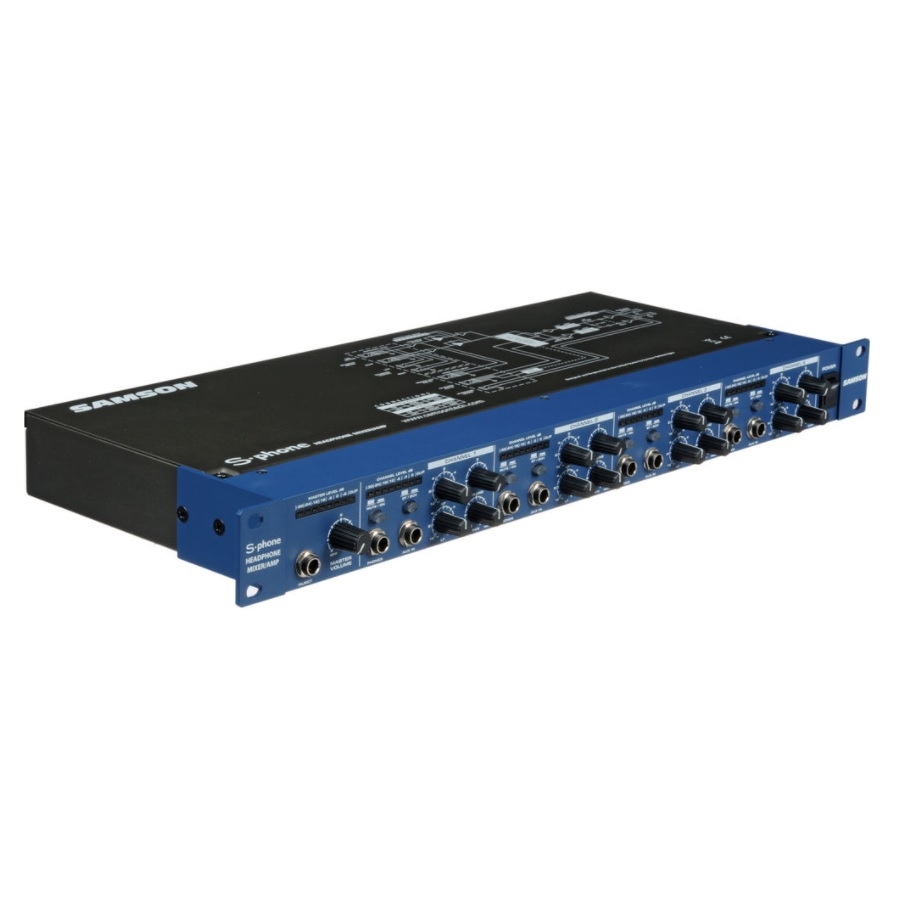 De S-Phone is een handige hoofdtelefoonversterker van Samson. Een hoofdtelefoonversterker heeft meerdere uitgangen voor hoofdtelefoons die individueel af te stellen zijn. Dit wordt voornamelijk gebruikt in opnamestudio’s. De S-Phone heeft vier kanalen, waar per kanaal drie hoofdtelefoons op aangesloten kunnen worden. Het apparaat heeft ook een master kanaal waarmee het mogelijk is om het totale level en LED-meter van het apparaat op in te stellen. De individuele kanalen hebben individuele volume- en levelknoppen. Het is daarmee ook mogelijk om de instellingen van het masterkanaal te combineren met de individuele kanalen. Bovendien kunt u met dit apparaat de balans per kanaal instellen, dus welke geluiden en hoeveel geluid of volume rechts en links hebben. Het apparaat heeft ook een 2-band equaliser per kanaal. De S-Phone werkt als zeer goede voorversterker die afstemmingen van de audio zeer makkelijk maakt.
