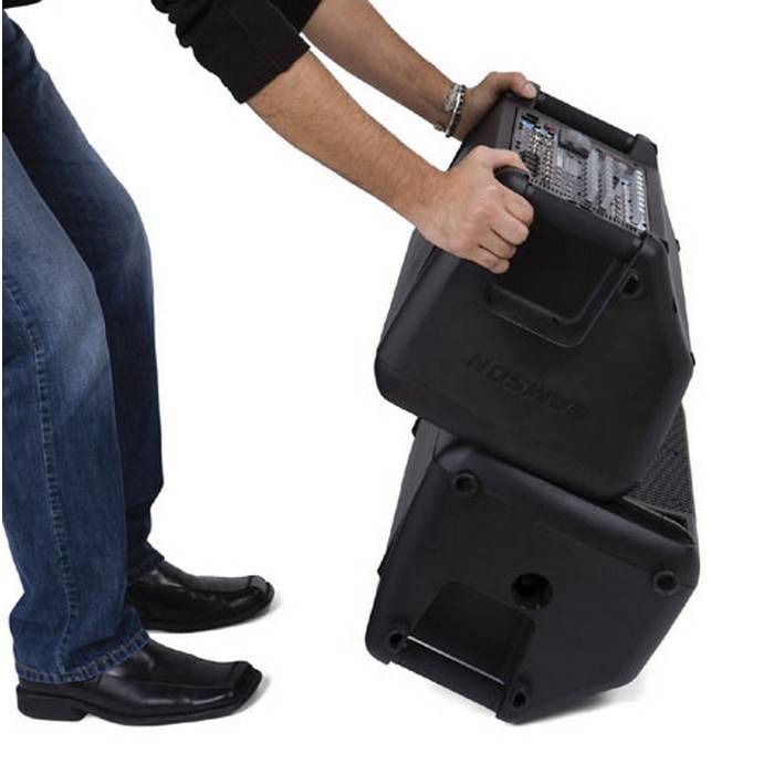 De lichtgewicht passieve speakers beschikken over een tweeweg systeem, bestaand uit een 8 inch woofer en een 1 inch tweeter voor de hoge frequenties. De speakers beschikken over een afgevlakte hoek. Het is hierdoor mogelijk om de speaker schuin te positioneren waardoor deze gebruikt kan worden als monitor