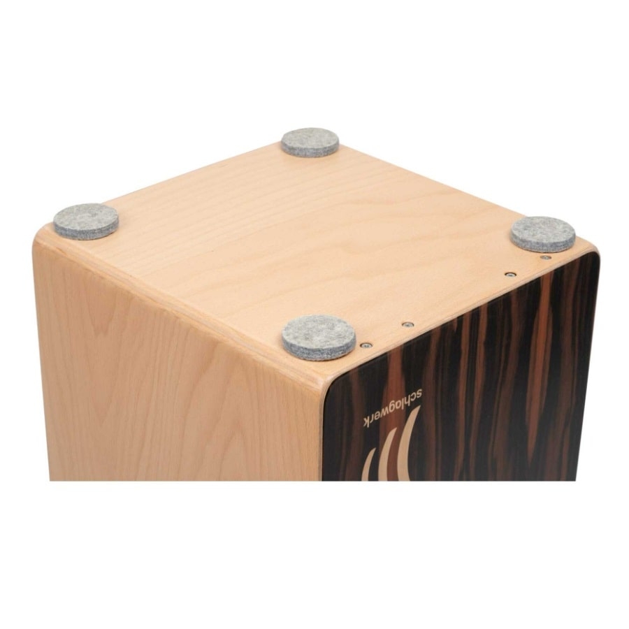De CP604 Mocha is een fijne en professionele cajon van Schlagwerk, een hoogwaardig Duits percussiebedrijf wat al hun instrumenten in Duitsland produceert. Dit is een fineline cajon, wat betekent dat deze slanker is en dus comfortabeler is. De dimensies van de cajon zijn 30 bij 30 bij 50 centimeter. Bovendien heeft de cajon twee keer zes CW² snaren. Deze snaren zijn spiraal gewonden en produceert een uniek geluid. Daarnaast is de cajon ook van goede houtsoorten gebruikt, met een donkere macassar voorkant en beukenhouten achter- en zijkanten. Zodoende heeft de cajon meer bas in het geluid dan gemiddeld. Kortom, de CP604 Mocha is een hoogwaardige cajon voor de enthousiaste speler.