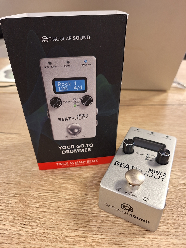 De Singlular Sound Beatbuddy Mini 2 is een effectpedaal dat drumbegeleiding biedt. Het kan live worden bediend met de voetschakelaar en vereist geen programmering. Het pedaal beschikt over 9 drumsets, 24 genres en 200+ stijlen.
