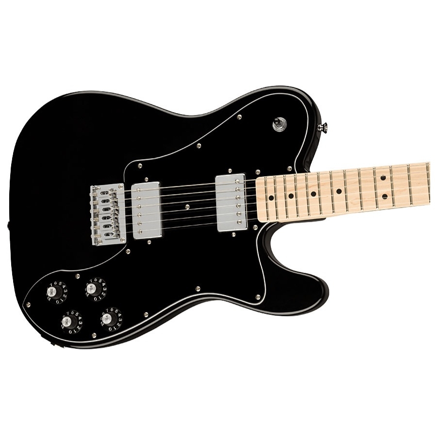 Squier heeft nieuwe modellen in hun Affinity serie uitgebracht. Hiermee breiden ze hun lijn uit naast de standaardmodellen. Met de Affinity Telecaster Deluxe brengen ze een unieke en opvallende gitaar op de markt. Hoewel het een Telecaster is, ziet de gitaar er niet persé hetzelfde uit. De vorm is wel hetzelfde als die van een standaard Telecaster, echter zorgen de slagplaat, de elementen en de knoppen voor een nieuw uiterlijk. Het grootste verschil zijn de elementen. Telecasters hebben normaal twee single-coil elementen, maar op dit model heeft Squier twee humbucker elementen gebruikt. Humbucker elementen klinken warmer dan single-coils en klinken dan ook beter met vervorming. Bovendien kunnen ze meer effecten aan. Zodoende is deze Telecaster dus beter geschikt voor hardere muziek dan een standaard Telecaster. De elementen zijn af te stellen met de driestandenschakelaar, de twee volumeknoppen en de twee toonknoppen. De body van de gitaar is van populier gemaakt en de hals van esdoornhout. Kortom, een bijzondere gitaar voor een lage prijs!