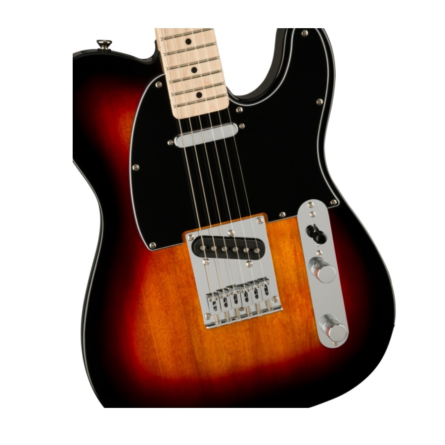 De Squier Affinity Telecaster is dus een goedkopere versie van de legendarische Fender Telecaster. De Telecaster was het eerste model ontworpen door Leo Fender, en is nog steeds zeer populair. Dit blijkt ook uit het feit dat vele legendarische gitaristen ook Telecasters gebruiken, zoals Prince en The Edge. Telecasters hebben twee single-coil elementen, dit zorgt voor een twangy en uniek geluid. Dubbele single-coil elementen staan bekend voor hun veelzijdigheid, ze klinken geweldig met vervorming en clean. De elementen zijn mogelijk af te stellen met de tweestandenschakelaar en de toon- en volumeknop. De body is van elzenhout gemaakt, dit zorgt voor een goed gebalanceerd geluid. De hals is van esdoornhout gemaakt, wat erg comfortabel in de hand ligt. Bovendien heeft de gitaar een prachtige kleur. Kortom, een zeer goede beginnersgitaar!
