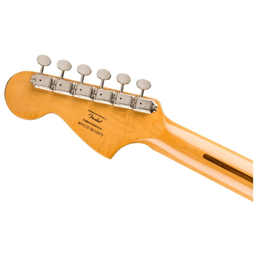 De Classic Vibe ‘70s Jaguar is een goede Jaguar voor een goede prijs. De gitaar is gebaseerd op de jaren ‘70 Fender Jaguar, en heeft ook een vintage uitstraling. Zodoende heeft de gitaar vintage tuners en een vintage tremolo. De gitaar heeft dan ook twee Alnico single coil elementen, waardoor deze gitaar als een typische vintage Jaguar klinkt. Zodoende is het mogelijk hetzelfde geluid te produceren als Kurt Cobain en Johnny Marr. De gitaar heeft twee verschillende circuits die individueel af te stellen zijn, met dus een schakelaar om tussen de circuits te kunnen schakelen, een volumeknop en een toonknop voor beide circuits, aan- en uitknoppen voor elk element en een toonschakelaar. De body is van populier gemaakt en de hals van esdoornhout. Kortom, een geweldige gitaar voor een fijne prijs!