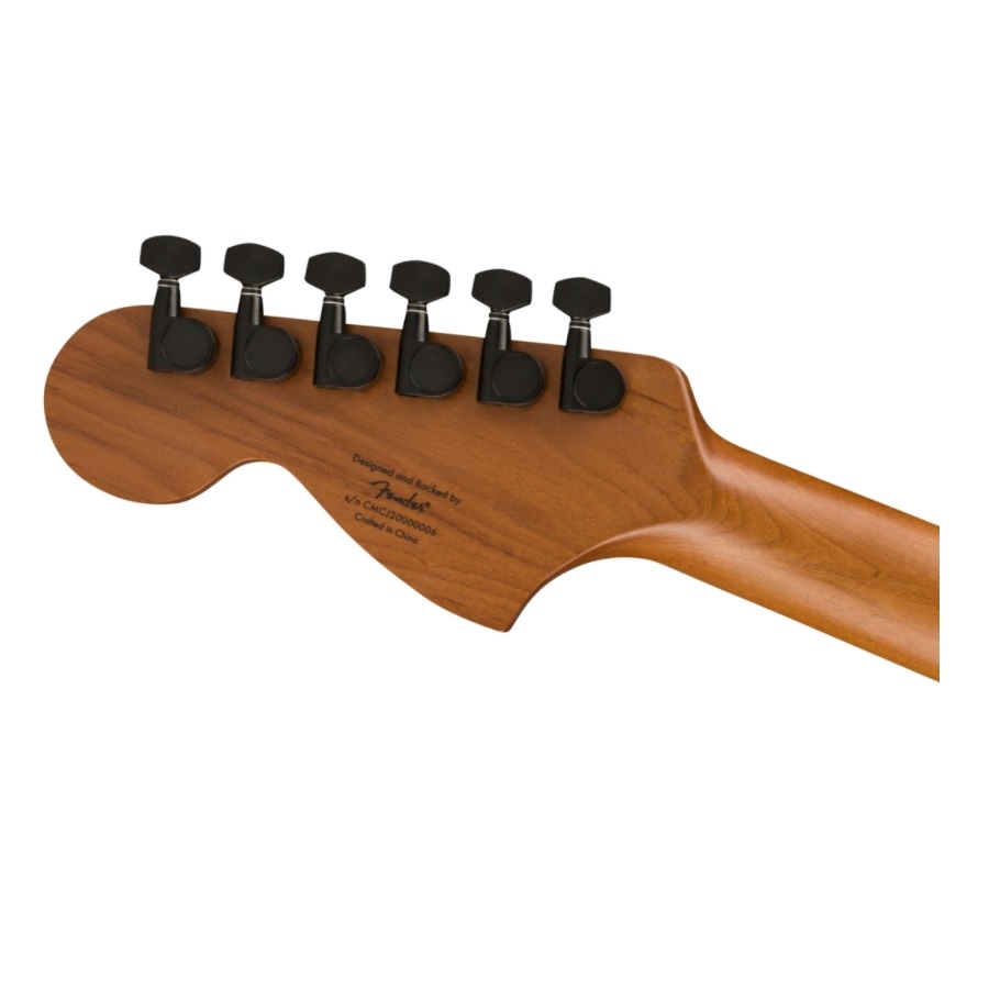 De Contemporary Stratocaster Special in Sky Burst Metallic is een opvallende en goede gitaar. De body is van populier gemaakt. Populier is erg licht, waardoor het ideaal is voor een elektrische gitaar, en zorgt voor een mooi gebalanceerd geluid. De body is afgewerkt met een blauwe polyurethaan kleur met een zwarte headstock, wat voor een uniek en chic uiterlijk zorgt. De hals en toets zijn van geroosterd esdoornhout gemaakt. Esdoornhout is een geweldige keuze hiervoor, het articuleert de noten erg goed en ligt fijn in de hand. Het feit dat het geroosterd is, veranderd niets aan het geluid of gevoel. Het zorgt juist wel voor een prachtig uiterlijk. Geroosterd esdoornhout is iets donkerder en heeft een zichtbaardere nerf, wat voor een luxueus en professioneel uiterlijk zorgt. De elementen op de gitaar zijn ook opvallend. De Contemporary gitaren staan bekend om hun humbuckers, maar deze heeft eigenlijk geen humbucker. De gitaar heeft drie single-coils, maar niet zoals een standaard Stratocaster. Ten eerste staan ze alle drie schuin, waardoor ze beter contact hebben met de snaren, en ten tweede staat de middelste recht naast het brugelement. Zodoende kunnen deze twee elementen in serie gespeeld worden, wat in principe hetzelfde effect heeft als een humbucker element. Verder heeft deze gitaar ook de optie om alle drie de elementen tegelijkertijd te gebruiken, wat de meeste Stratocasters ook niet hebben. Kortom, de Contemporary Stratocaster Special is dus een prachtige gitaar met een zeer unieke en innovatieve elementconfiguratie!