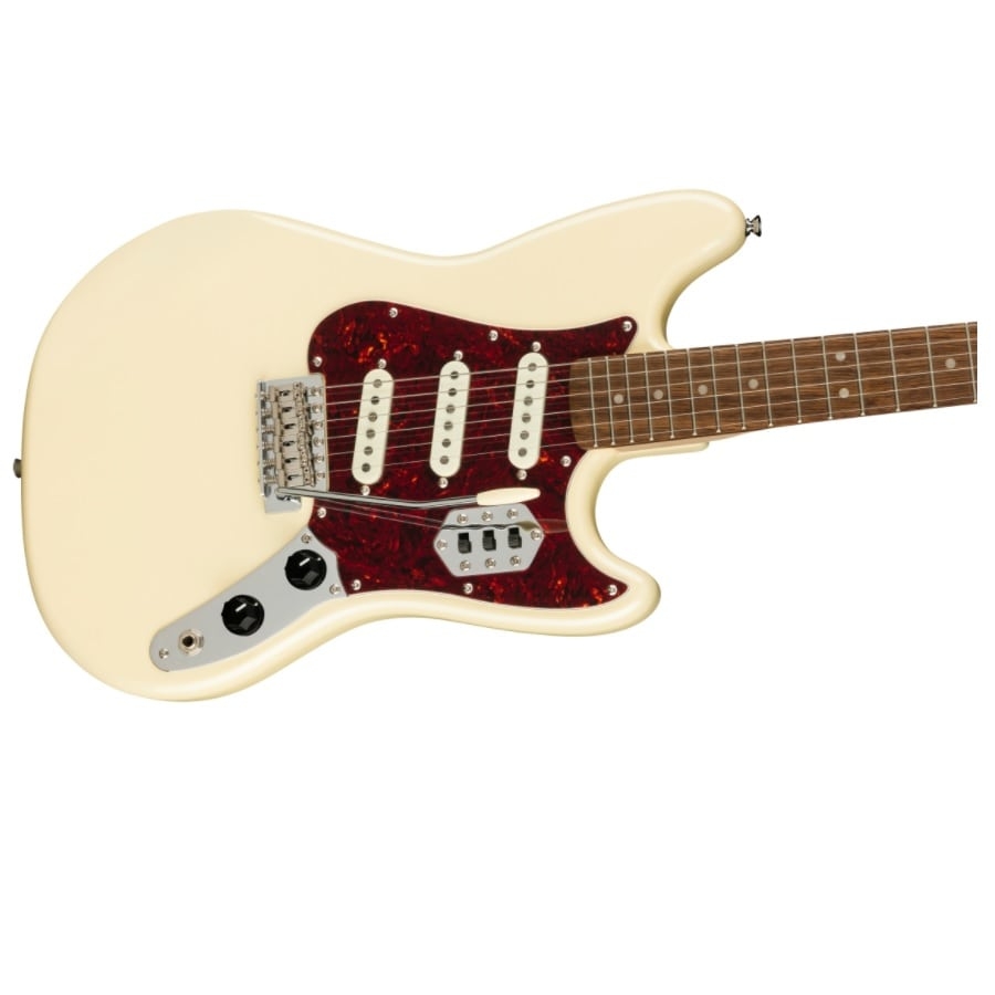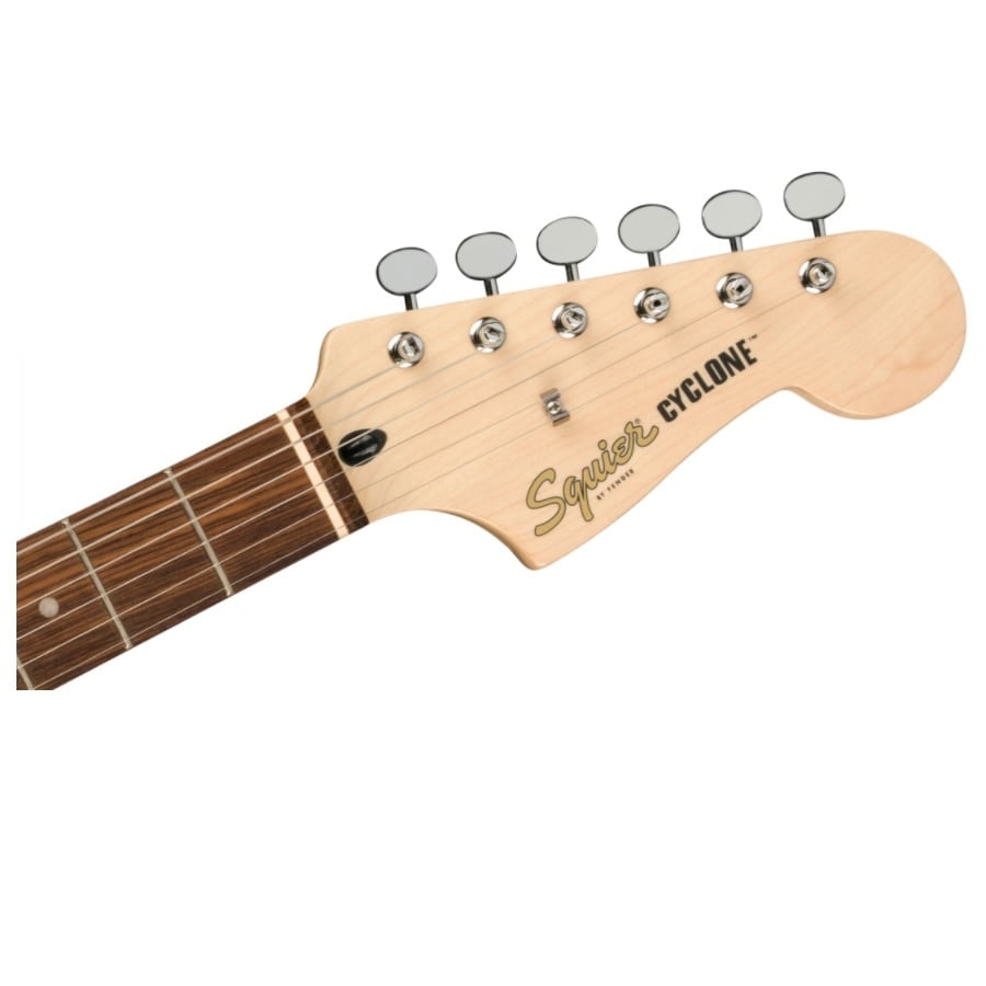De Paranormal Cyclone is een unieke en betaalbare elektrische gitaar van Squier. De gitaar is een samenvoeging van populaire Fender gitaren. Zodoende heeft de Paranormal Cyclone een kleine body in de vorm van een Mustang, het tremolosysteem en elementen van een Stratocaster en de knoppen van een Jaguar. Dit zorgt ervoor dat de gitaar enorm veelzijdig is. Bovendien is de gitaar van goede kwaliteit, waardoor deze geschikt is voor de beginnende gitarist en de gevorderde. De body is van populier gemaakt en de hals van esdoornhout. Dit is een populaire combinatie die Fender/Squier vaak gebruikt. Populier zorgt ervoor dat de body stevig maar licht is, en de esdoornhouten hals voelt erg comfortabel aan. De toets is van Indiase laurier gemaakt, wat een goed alternatief is voor palissander. De gitaar is dus ook milieuvriendelijk, want deze drie houtsoorten zijn erg duurzaam. Kortom, de Paranormal Cyclone is een goedkope, veelzijdige én duurzame gitaar!