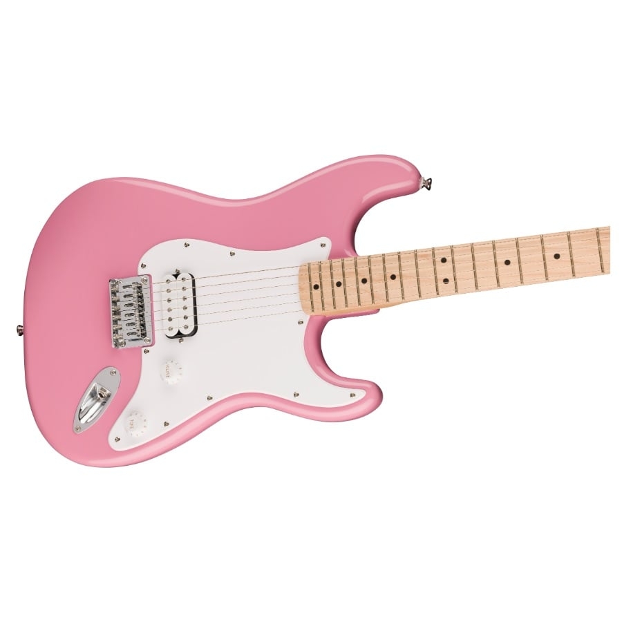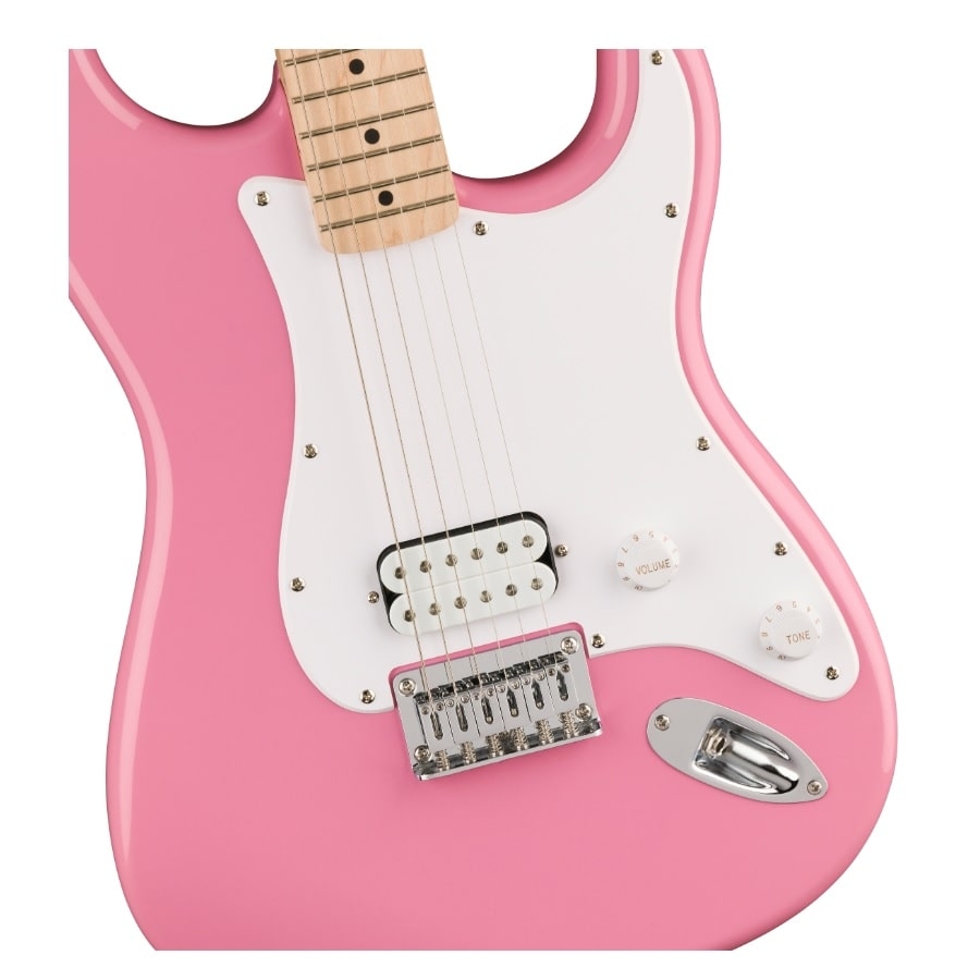 De Sonic Stratocaster HT H lijkt op een Stratocaster versie van de Esquire. De Esquire was de eerste gitaar van Fender en had maar één element bij de brug. Dat heeft deze Stratocaster ook. Dit is tegenwoordig een populaire configuratie want het is simpel en betrouwbaar. De Sonic Stratocaster HT H heeft een humbucker element. Dit is een dubbelspoelelement wat een warm en vol geluid produceert. De body is van populier gemaakt, wat voor een gebalanceerd geluid zorgt. De hals en toets zijn van esdoornhout gemaakt.