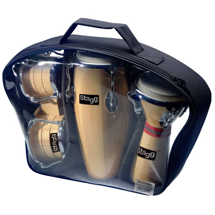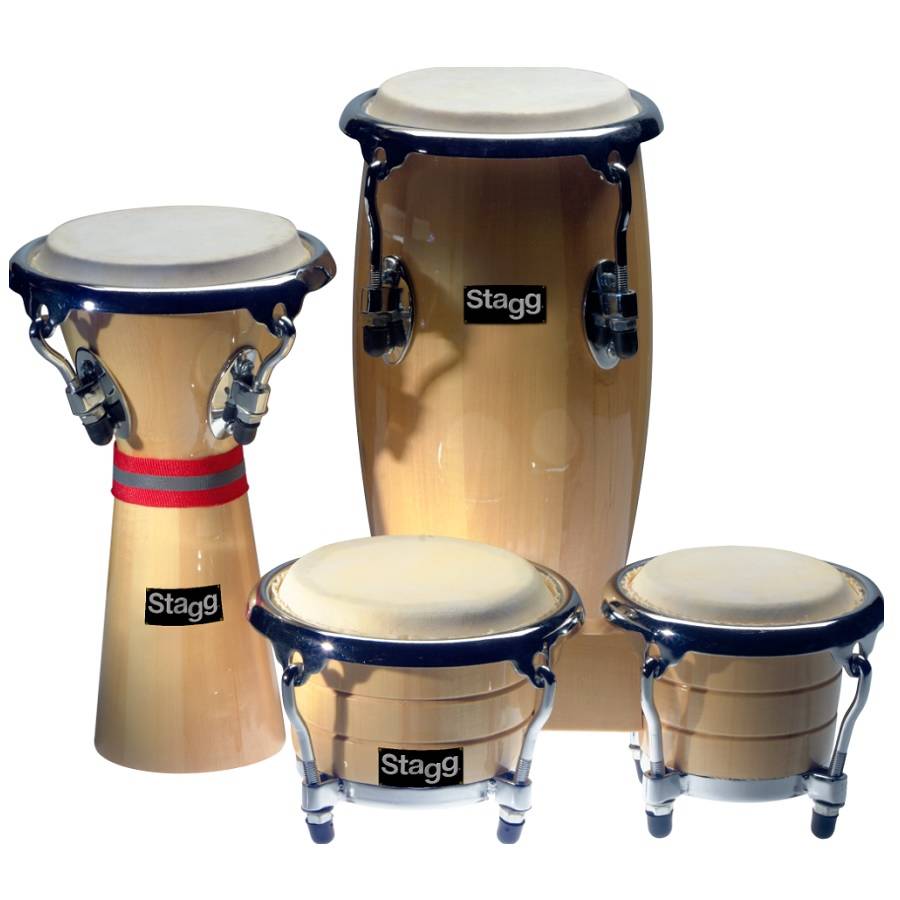 1x mini-djembé (diam. 3 3/4"/9,5 cm), H = 22 cm) + 1x mini-conga (diam. 4"/10 cm, H = 11"/28 cm) + 1x set mini-bongo's (diam. 3 1/8" + 3 3/4"/7,9 cm + 9,5 cm), H = 3, 4/5"/9,5 cm)