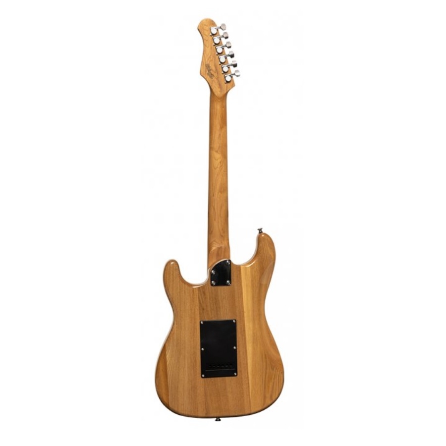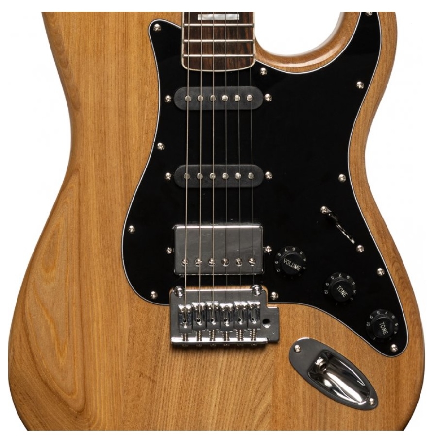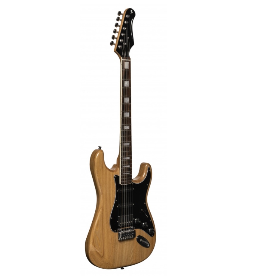 De SES-60 Vintage is een opvallende elektrische gitaar. Deze gitaar is gebaseerd op de populaire Stratocaster, die beroemd is geworden door gitaristen als David Gilmour en Jimi Hendrix. Deze mooie natuurlijke kleur zorgt ervoor dat de gitaar een prachtig uiterlijk heeft, en de zwarte accenten geven de gitaar juist weer een stoere look. Daarnaast heeft de gitaar dubbele single-coil pick-ups en een humbucker, dit maakt de gitaar erg veelzijdig. De schakelaar en de knoppen maken het erg makkelijk om het geluid af te stellen. Dit maakt deze gitaar een uitstekende optie voor elk genre. De body is gemaakt van massief elzenhout en de nek is gemaakt van massief esdoornhout. Deze gitaar is een ideale aanwinst voor een veelzijdige speler met een klein budget!