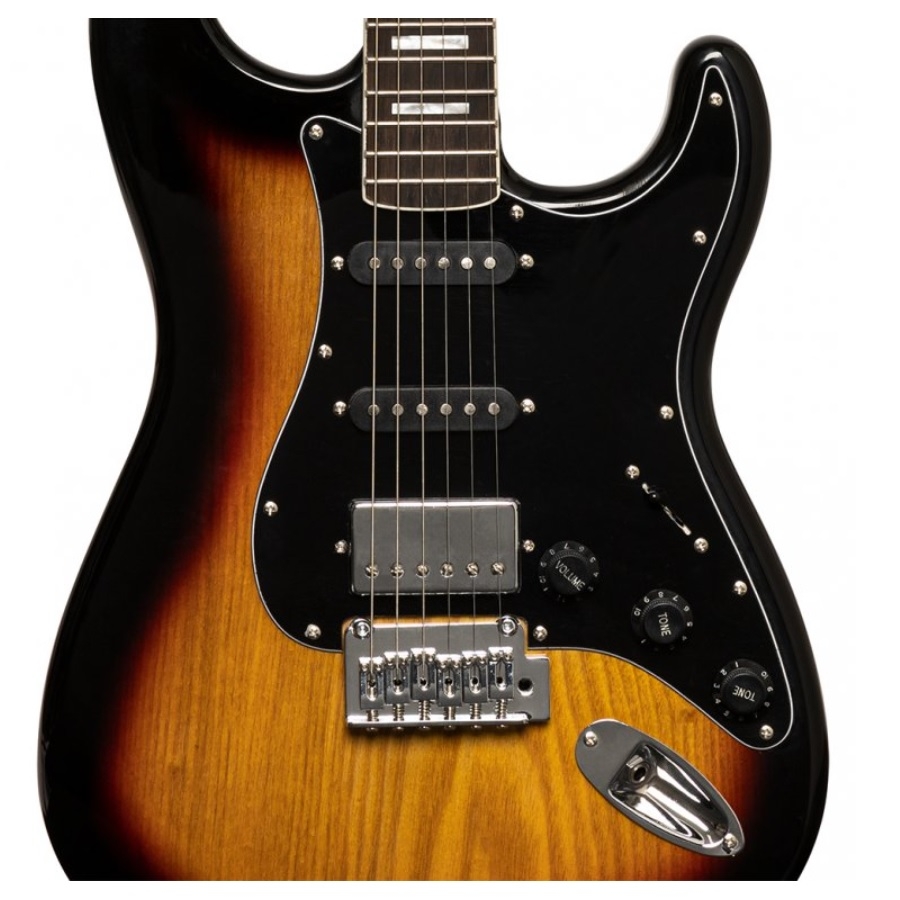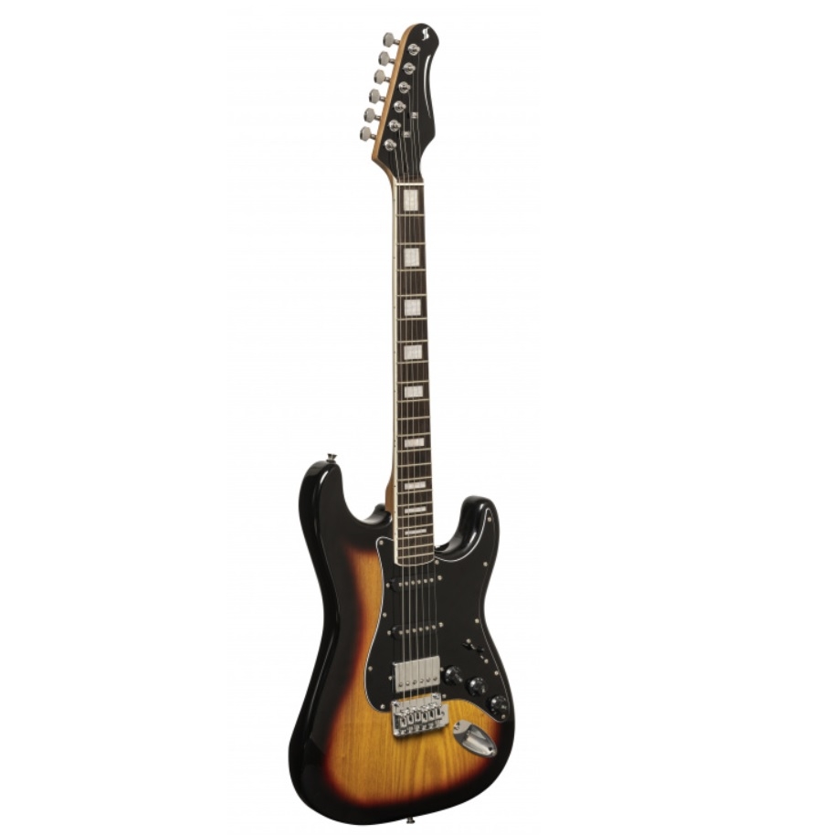 De SES-60 Vintage is een zeer opvallende gitaar die is gebaseerd op de legendarische Stratocaster. De sunburst kleur van de body zorgt voor een vintage uiterlijk, terwijl de zwarte accenten de gitaar toch een modern tintje geven. Stratocasters zijn de perfecte gitaren voor de veelzijdige of beginnende gitarist, omdat het geluid makkelijk af te stemmen is. Dit komt doordat de gitaar dubbele single-coil pick-ups en een humbucker pick-up heeft. Deze pick-ups zijn af te stellen door middel van de vijfstandenschakelaar, de volumeknop en de twee toonknoppen. De body is gemaakt van massief elzenhout en de nek van massief esdoornhout, wat voor een geweldige klank zorgt. Kortom, deze gitaar is de ideale aanwinst voor elke gitarist!
