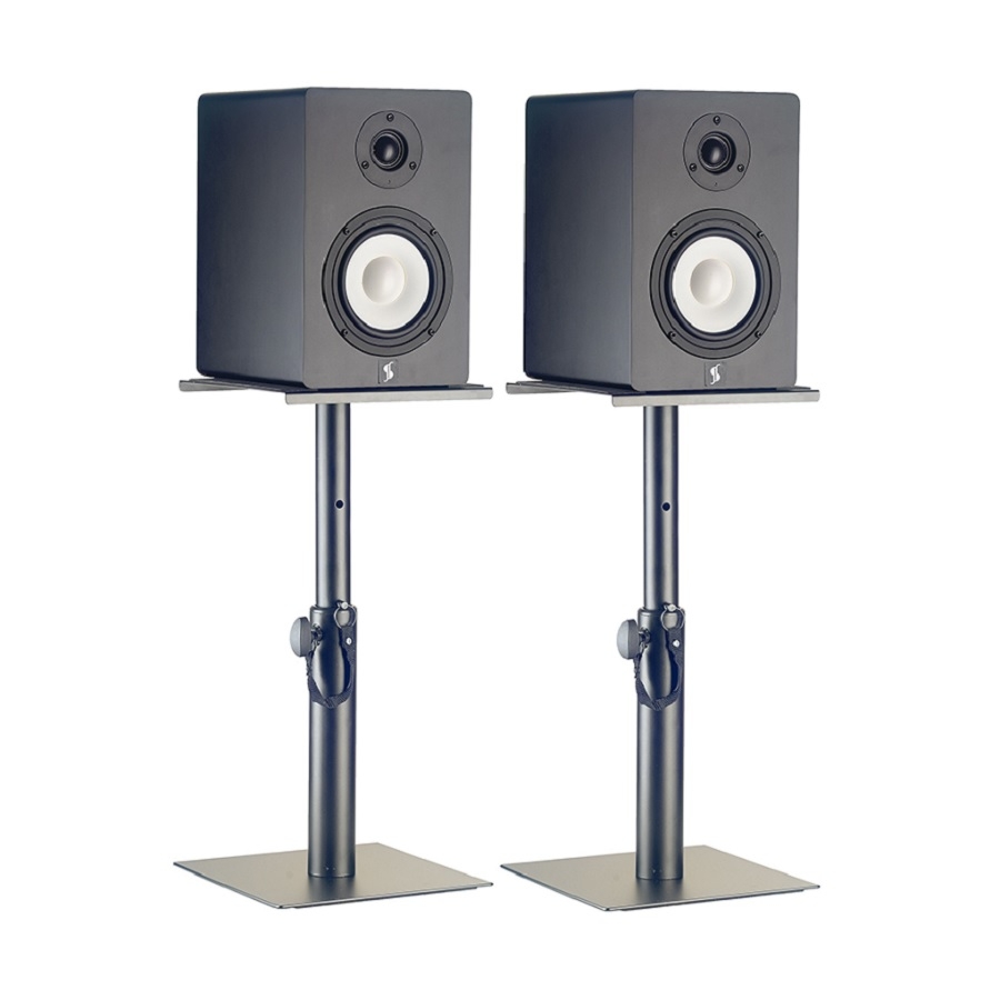 De Stagg SMOS-05 is een degelijke set statieven voor studiomonitoren. De set wordt veel gebruikt in thuissituaties of in muziekstudio’s. De statieven zijn beide in drie stappen in hoogte te verstellen (30cm, 40cm, 50cm) met een veiligheidspin. De maximale belasting van de studiomonitorstatieven is 25kg. Met een gewicht van slechts 2,75 kilogram zijn ze simpel te verplaatsen of te vervoeren. Het plateau is vierkant en heeft de afmetingen van 24 x 24cm.